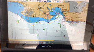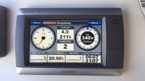 Wenn ich also möchte, dass mein Raymarine C80 dem Garmin seine Informationen über Wind und Wassertiefe mitteilt, verbinde ich das Kabel TXP (+) mit dem Kabel RXP (+) vom Garmin. Dann noch die Minuskabel (TXN und RXN) zusammenbringen. Jetzt sollten die entsprechenden Informationen erscheinen. In meinem Fall die AIS Informationen (graue Schiffe beim Raymarine). Klasse ist, wenn man damit auch den zweiten Plotter am Steuerstand (Garmin) die informationen vom AIS und den Bordsystemen mitteilen kann. Das geht, wenn man am Garmin das Signal vom AIS einspeist und am zweiten Eingang den Ausgang vom Raymarine ( Wind und Logge) anschließt. Funktioniert tadellos, wie man an den Bildern sehen kann. Sogar der PC mit openCPN bekommt seine Info.
