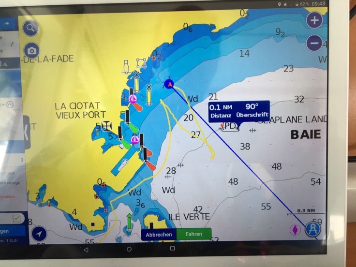 Am Abend gegen 23:30 in der Bucht von La Ciotat geankert und nach einem kühlen Schluck Hopfenkaltschale und super Steaks Schlafen gelegt.