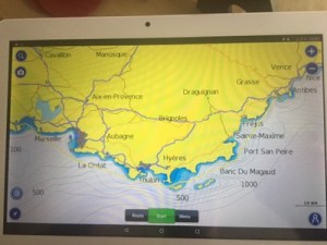 Nach einer Stunde nahm der Wind kräftig zu. Mistral vom Feinsten und direkt von vorne. Normalerweise Zeit beizudrehen und in einer geschützten Bucht abwarten bis es ruhiger wird. Wir nahmen es als willkommenen Test zu prüfen, ob wir Seekrank werden. War nix mit Seekrank. Aber das Wasser, welches durch die Notausstiege rein kam war schon gewaltig. Jetzt weiß ich, was die Angelsachsen meinen wenn sie horsing ( oder so) sagen. Es ging heftig rauf und runter. Das Boot wurde oft vom 💦 überspült. Aber alles im grünen Bereich. Mit beiden Maschinen ging es mit 5 Knoten gegenan. Hinter Hyers wurdet es ruhiger und unsere erste Nachtfahrt war ein Erlebnis! Cherie von 21 – 24 Uhr. Ich von 0 – 3 Uhr und Udo von 3 – 6 Uhr. Alles easy und mit Radar sieht man auch die Fischerbote die gerne ihr AIS ausschalten. 😊👍 Alles super.