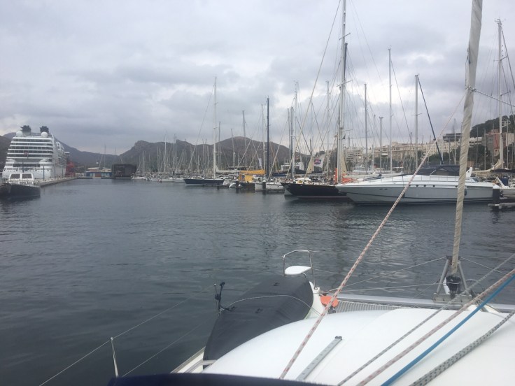 Aber zurück. Wir sind in einer bewegten Fahrt von Formentera nach Cartagena gekommen. Der Start war schon speziell, denn kurz nachdem wir Anker auf waren, kam das erste Gewitter und der Wind kam uns so blöd entgegen, dass wir nur direkt nach Süden statt nach Südwest fahren konnten. Später drehte der Wind wie er sollte. Aber die Welle, nee nee.