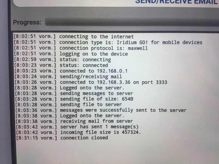 Aber das ist natürlich nicht wie DSL Zuhause 🏠. Obwohl es wie eine Fritzbox funktioniert. Es geht seeeehr gemächlich und Internet ist reine Theorie. Aber das Wichtigste: wir können kommunizieren und bekommen aktuelle Wetterberichte auch mitten auf dem Atlantik. Der Empfang sieht so aus