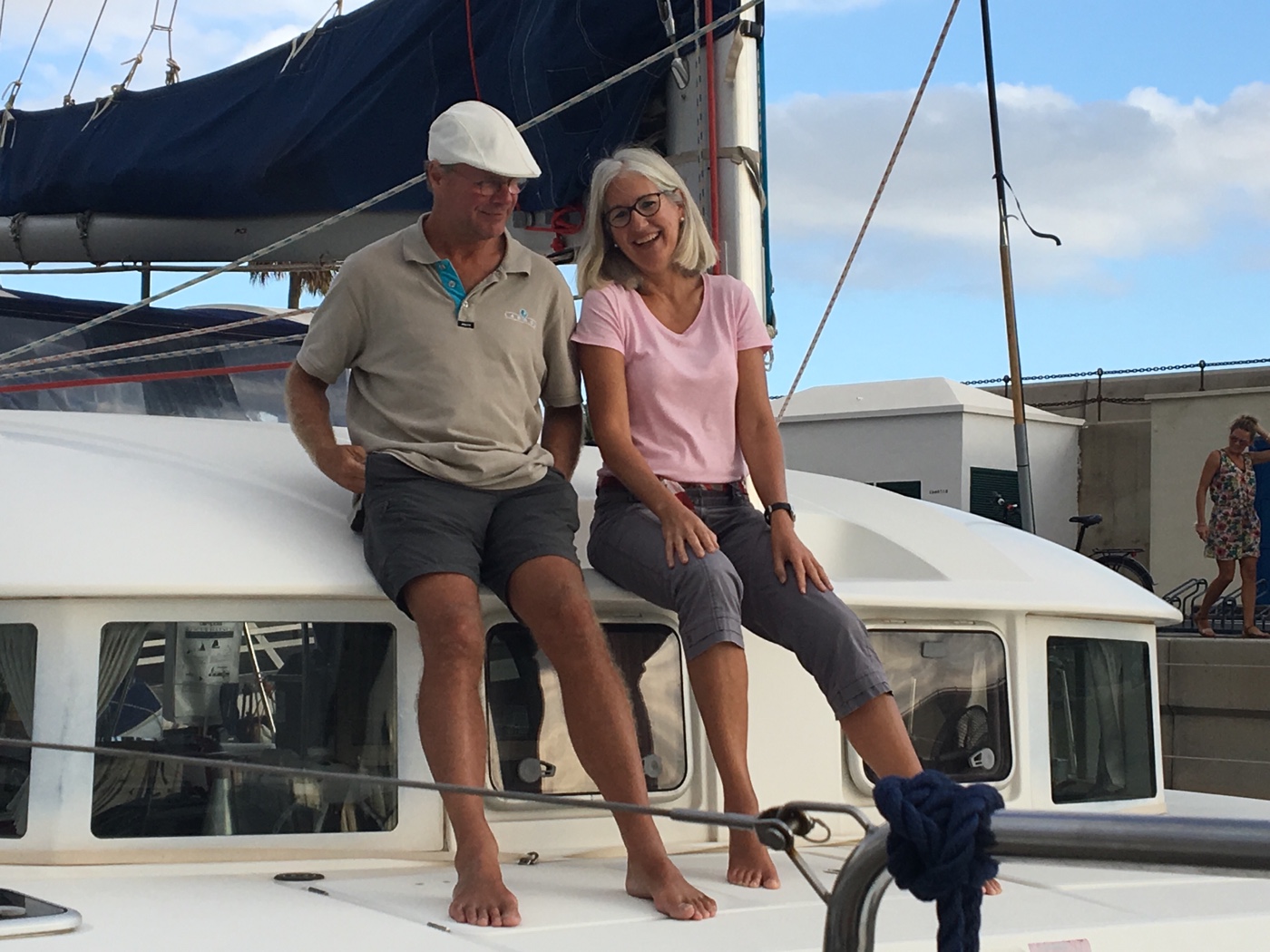 Martin und Ricki (ahoi.blog) sind angekommen. Die haben es richtig gemacht und haben ein paar Tage vor Graciosa geankert. Was die mit ihrem kleinen Schiff machen beeindruckt uns sehr.