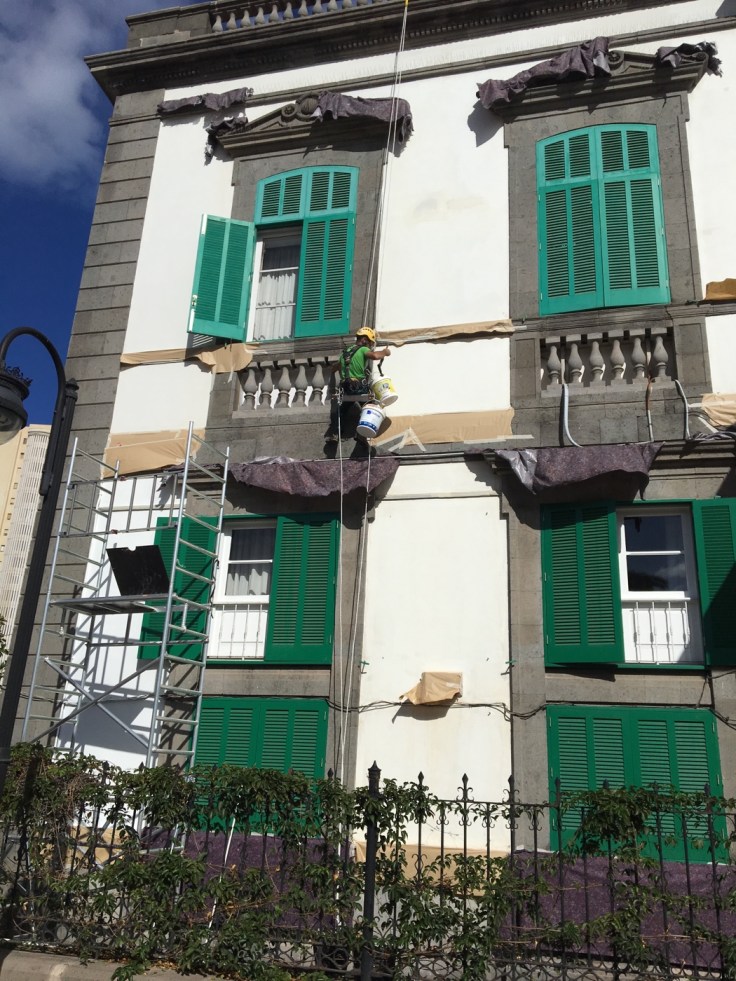 Neue Techniken sieht man auch: Anstreicher als Seilkünstler! Super, Gerüstbau ist teuer und er nutzte sogar die Schaukel zum Querstreichen. Genial 😎👍