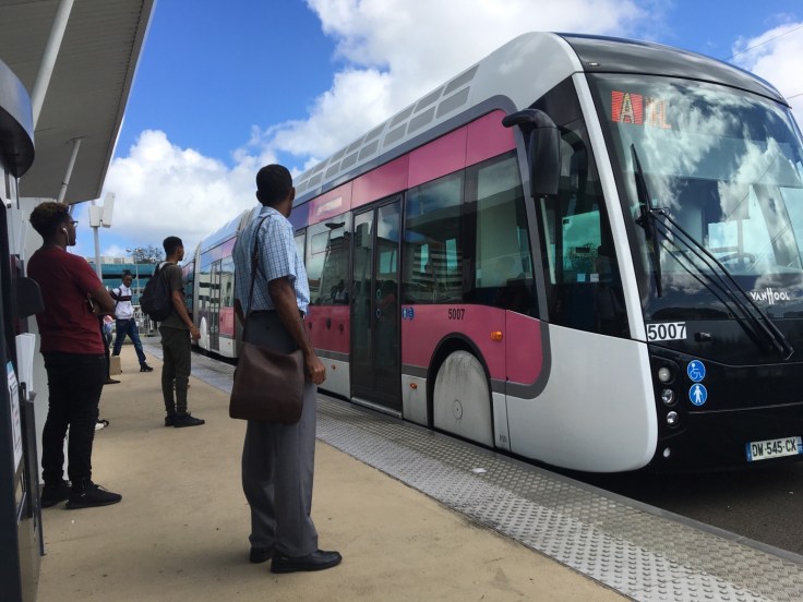 Hier auf Martinique ist es außergewöhnlich gut: die Menschen sind sehr freundlich und hilfsbereit. Stehst du wie ein Depp vor dem Fahrkartenautomaten kommt gleich ein netter Hinweis von einem zukünftigen Mitfahrer wie das Ding zu bedienen ist. Ist sehr simpel: angeben wieviel Personen fahren sollen, Geld oder Kreditkarte rein und schon kommt der Fahrschein als RFID-Karte aus dem Automaten.