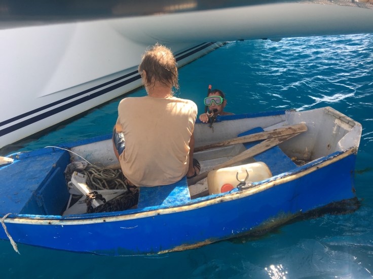 Erfreulich wie hilfsbereit manche Segler sind. Ein junges Paar aus UK kam und tauchte nach dem Anker, Cherie hat von unserem Boot geholfen und Günter ging dann mit einer langen Leine runter und knotete diese an den Anker ⚓️. Mit dieser Leine haben wir dann den Anker mit unserer Ankerwinsch vom Meeresgrund hochgezogen und gesichert.