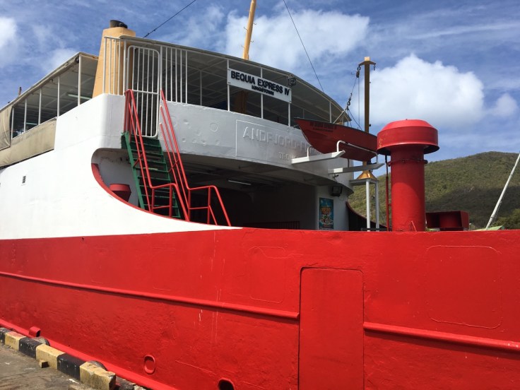 später musste ich noch am Anlegesteg gucken und die recycelte Fähre aus Skandinavien bewundern. Die muss ja wohl auch über den Atlantik gekommen sein.