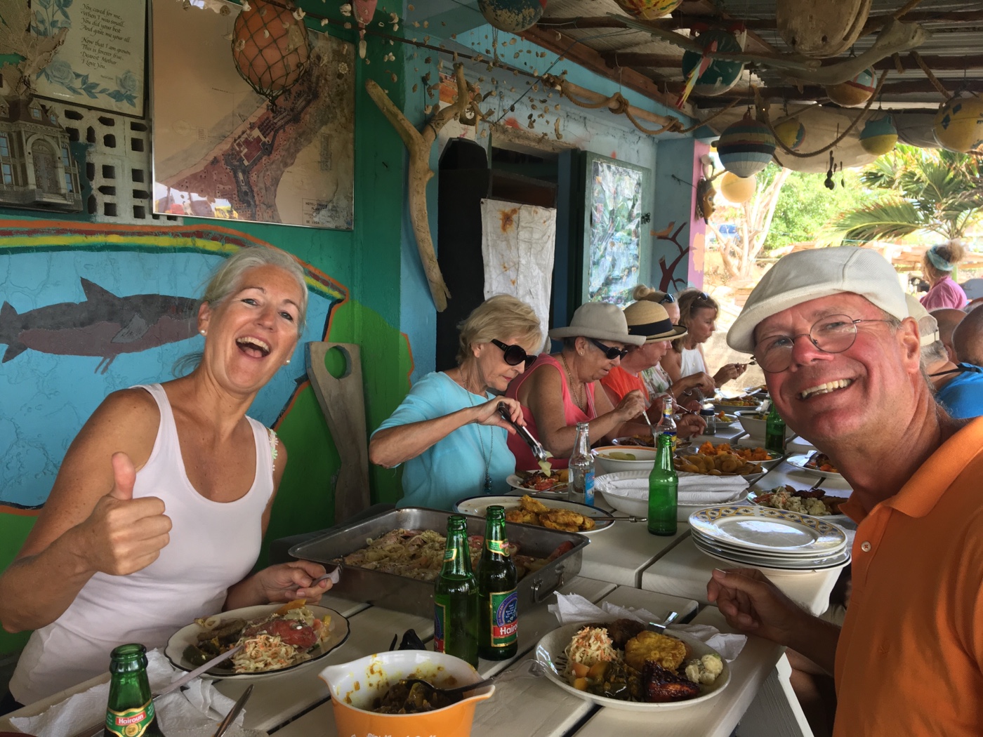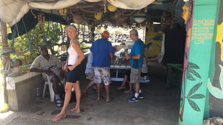 Nach und nach trudelte die Rentnergang ein. Alles muntere Expats die auf Bequia im Winter leben und sich in diesem Restaurant seit vielen Jahren immer im Frühjahr treffen. Ein Familientreffen quasi.