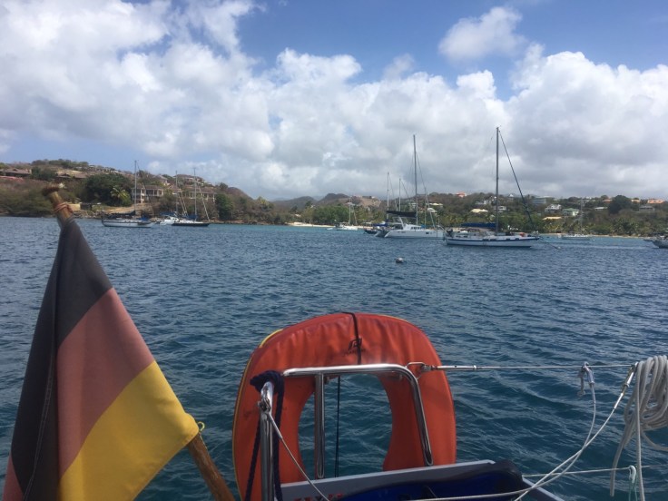 Ja, nach kurzem Shopping ab in die unter Seglern berühmte Prickly Bay. Überfahrt wellig aber einen super geschützten Ankerplatz direkt vor der gleichnamigen Marina.