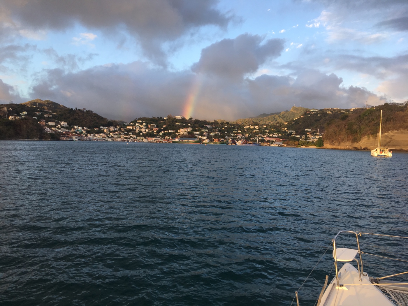 Nach ein paar Tagen sind wir jetzt nach Grenada rüber. Zuerst vor St. Georges (Hauptstadt) in sichtweite des Cruiserterminals geankert. Bei der Zufahrt mussten wir uns dann noch mit einem ablegenden 🚢 einigen. Der Kleinere gibt nach!