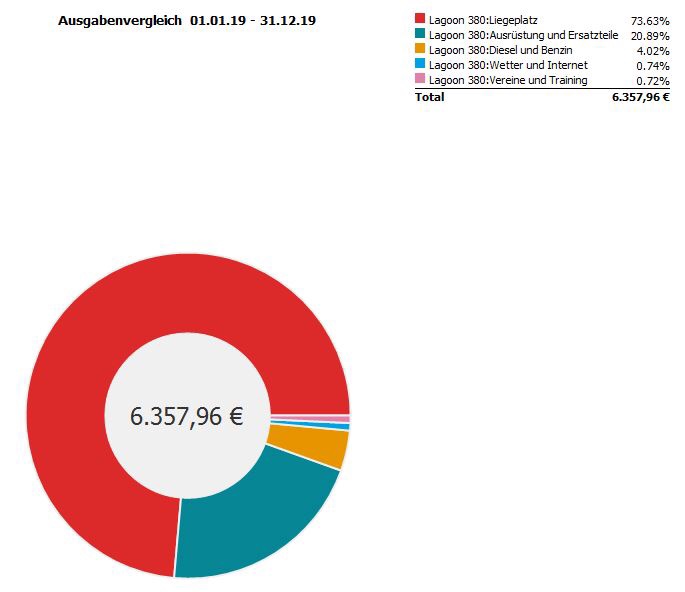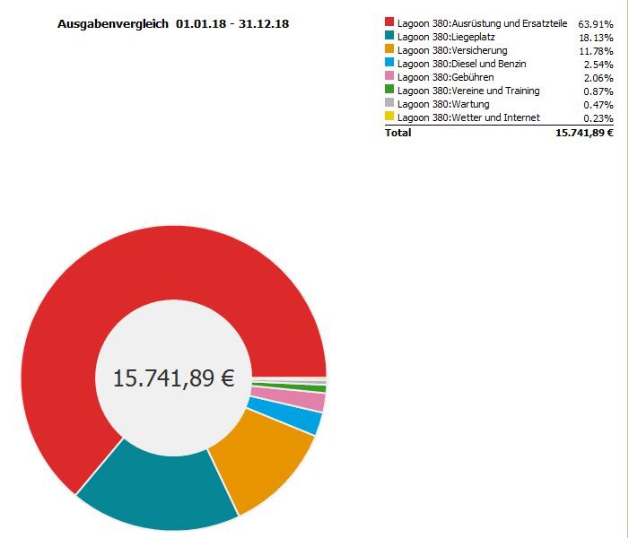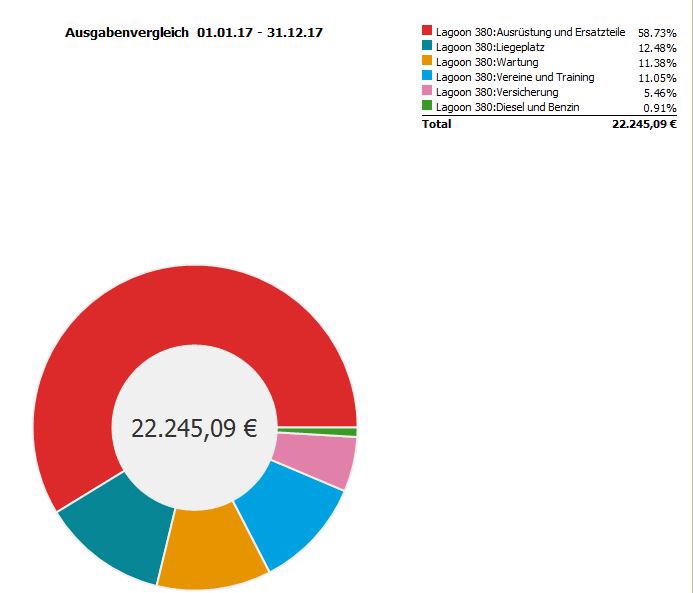 Besonders 2017 waren doch noch kräftig Investitionen in Ausrüstung und Reparatur nötig. Coppercoat, Solaranlage, Inverter und Wassermacher waren günstig aber nicht billig. 2018 ging das etwas sanfter weiter, da kamen die großen und kleinen Macken am Boot und Dingy zum Vorschein. In 2019 sind die Kosten für den Liegeplatz in Trinidad dominant.