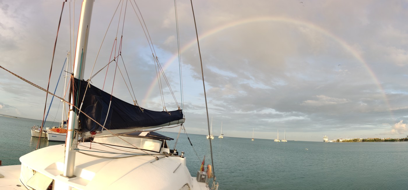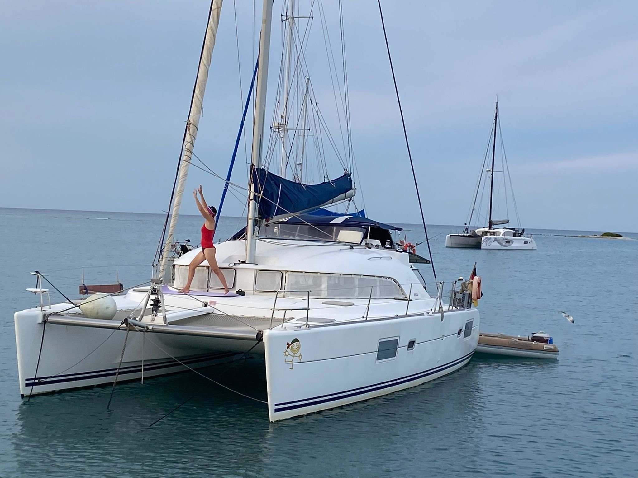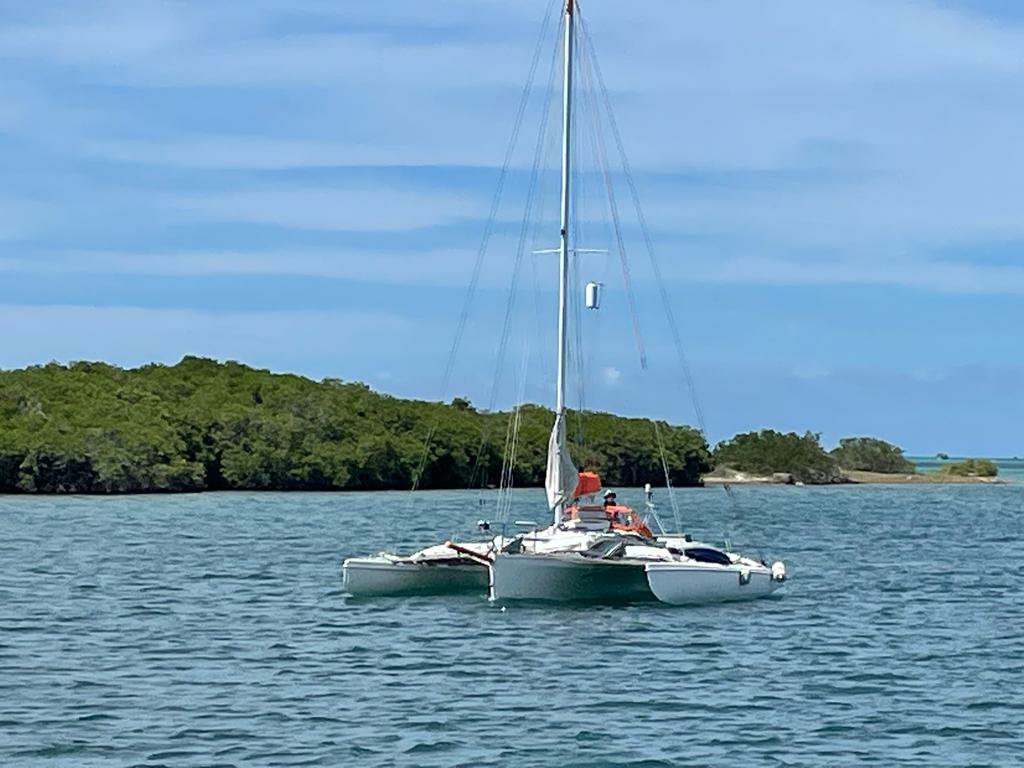 Hier ist mittlerweile eine nette Gruppe von Cruisern entstanden. Es sind viele Boote mit deutscher Flagge hier: Infinity, Off Piste, Ventura, Tribalance, Tortuga, Intrepid bear, Baradal. Das ist krass anders als letzte Saison. Da lagen wir hier mit maximal 4 Booten in der Bucht. Habe wohl zuviel Werbung gemacht 🤭 Der Grund ist aber simpel: sichere und schöne Gegend und gute Flugverbindung nach Deutschland über Amsterdam. Es gehen täglich Flüge und Covid haben sie hier ganz gut im Griff. Steve, auf dem Foto ganz aussen, (auch RWTH Aachen) ist mit seinem Corsair Trimaran (Infinity) hier. Das Boot ist eigentlich nicht für Atlantik und Co. gemacht. Aber Steve liebt die Herausforderung. Wir hatten ihn auf Antigua kennen gelernt und uns gut verstanden. Er ist jetzt mal eben mit seinem Boot aus Trinidad hier herüber. 6 Tage und über 1000 nm effektiv gesegelt. Er muss ja mit dem Flitzer anders fahren als wir es können. Trinidad war echt blöd für ihn. Das Boot lag dort wegen Corona 2 Jahre geblockt. . .