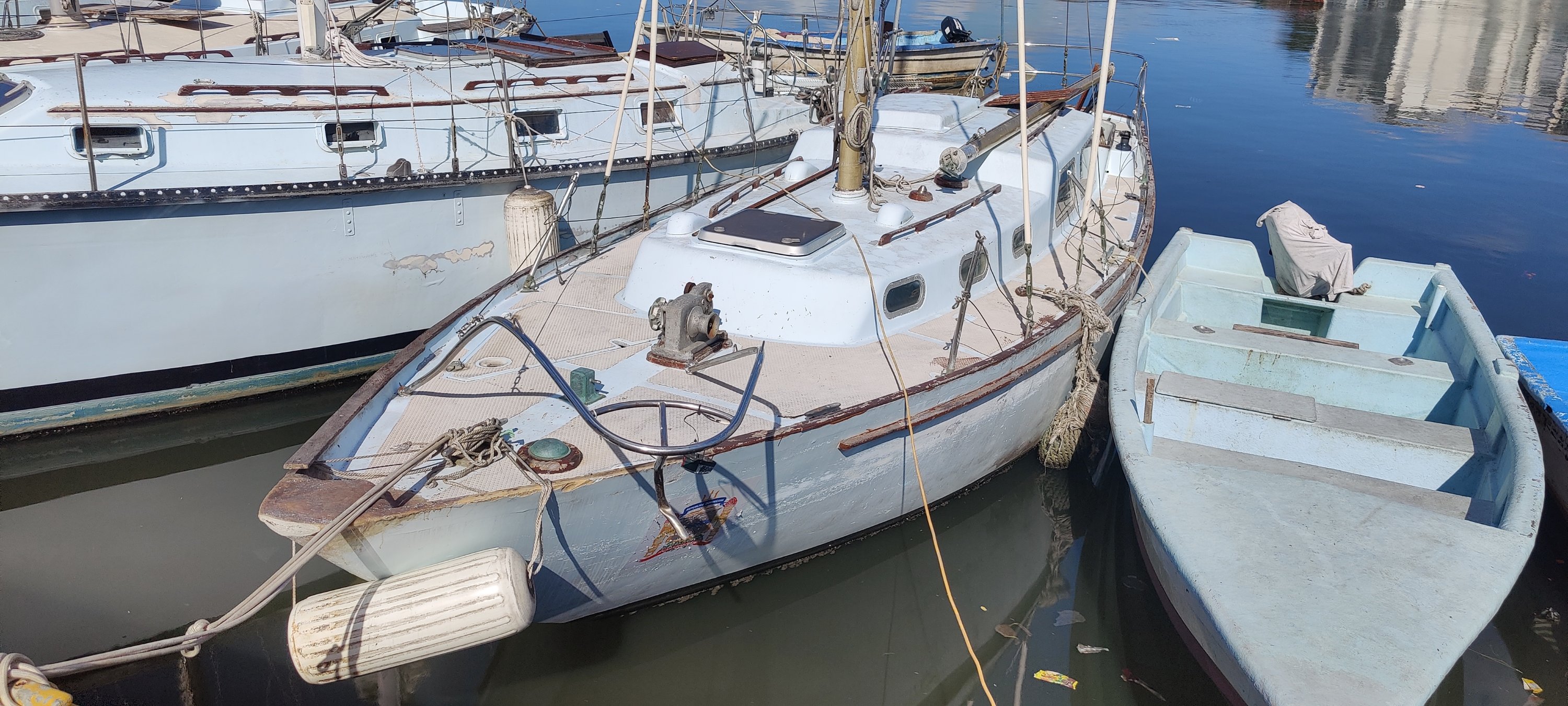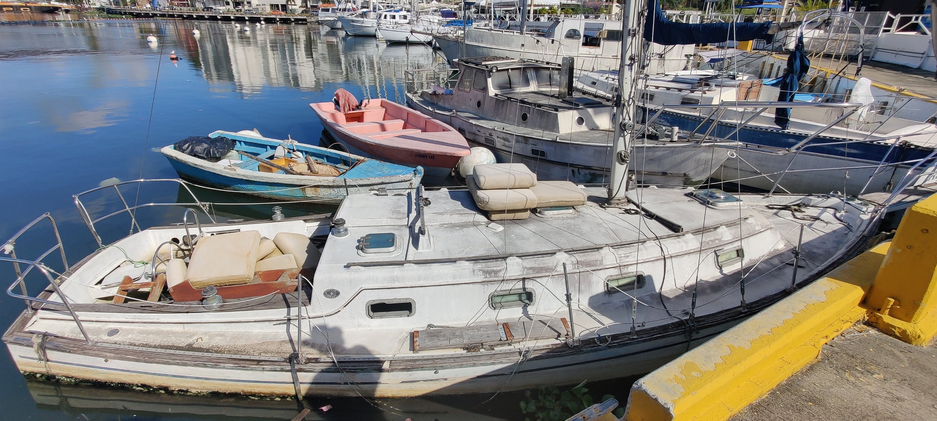 Eine kleine Auswahl an Bildern von Schrottbooten die hier in der Marina rumhängen. Die Geschichten dahinter sind oft traurig. Häufig sind die Eigner ins Alter gekommen oder verstorben und niemand fühlt sich zuständig. Das Problem ist, dass anscheinend herrenlose Boote, ähnlich wie Autos, nicht einfach verschrottet (Plastik) werden können und die unklare Eigentumsfrage jeden, der da was machen will, vor erhebliche rechtliche Risiken stellt.