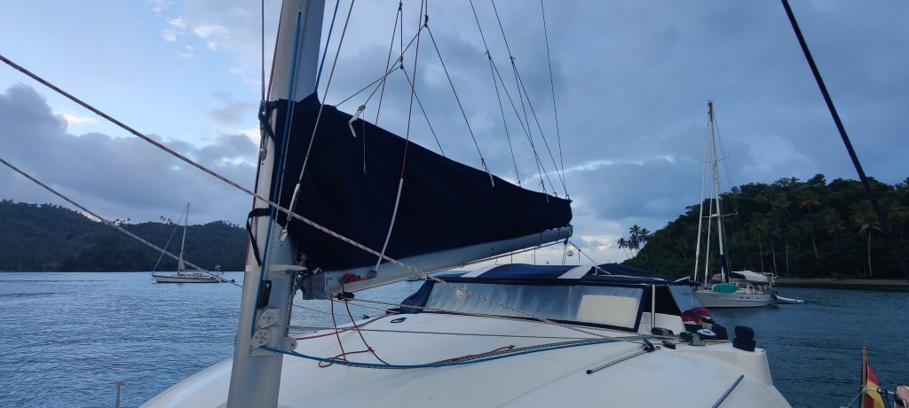 Ja und dann sind wir das Wagnis eingegangen, unser Lazybag erneuern zu lassen. Bisherige Angebote lagen über 1000€. Hier in Samana fragte der Canvasman (Schneider für Segelstoffe) 700€ für die Arbeit. Hat er gut und pünktlich gemacht.
