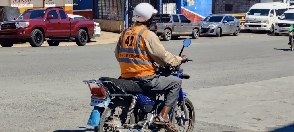 Aber das ist hier keine Anarchie. Es gibt offizielle Moto-Taxis. Die Fahrer haben eine Warnweste mit Zulassungsnummer an.