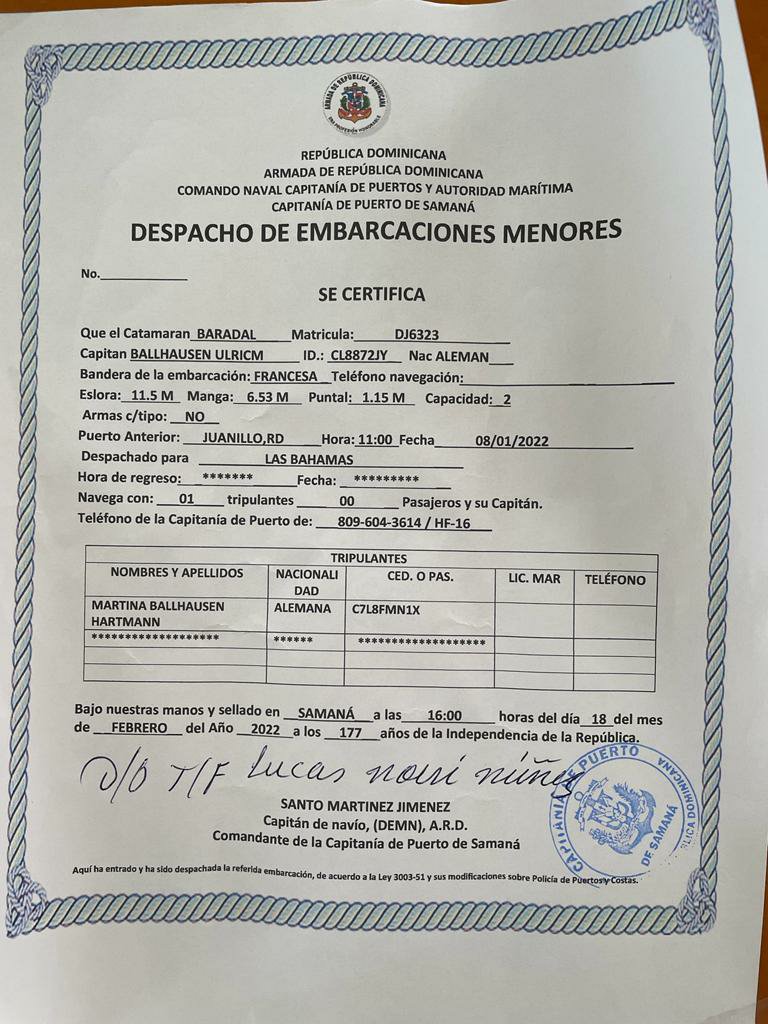 1. Abmelden von Schiff und Crew aus der DomRep und