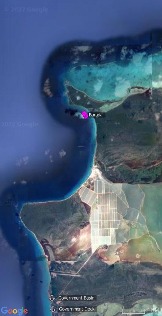Was wir nicht wussten, wir lagen ziemlich genau vor der Stelle, an der der Tanker vor der Küste fest macht und mit langem (!) Schlauch die Tankwagen der Insel befüllt. Die wiederum dienen als Tank fur die Tankstelle und den Dieselgenerator, der mit infernalistischem Lärm die Insel mit Strom versorgt.