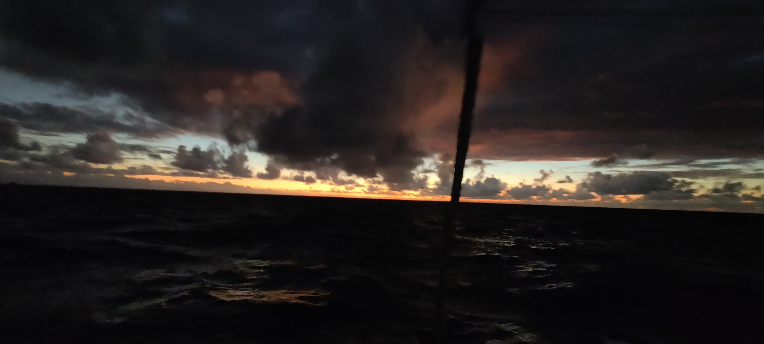 Etwas verpennt sind wir kurz vor Sonnenaufgang aufgestanden, haben die zerschlagenen Glieder gereckt, das Krönchen aufgesetzt und sind nach einer Katzenwäsche um 6:30 Uhr Anker auf.