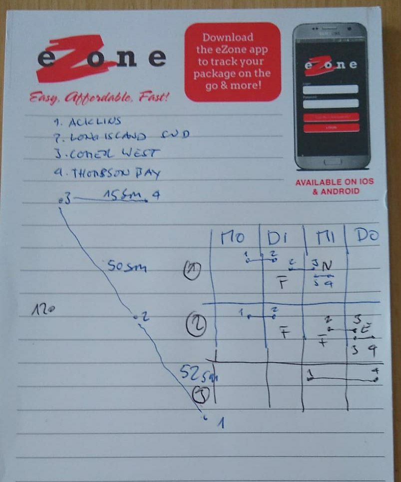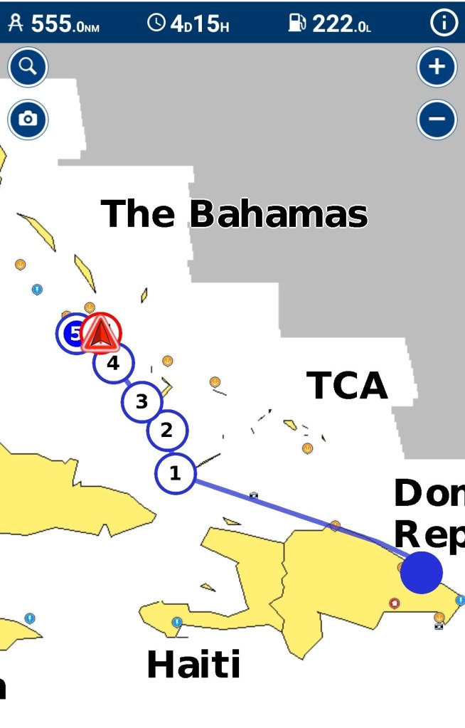 Der nächste Tag fing gemütlich an. Die nächsten Tage waren schwache Winde um 3 Beaufort angesagt. Also haben wir nach ein paar Überlegungen den Plan von Zoltan übernommen, zwei Nachtfahrten bis zur Thompson Bay auf Long Island zu machen. Ruhiges Meer, seichte Brise, da ist Segeln in der Nacht auch wirklich schön.