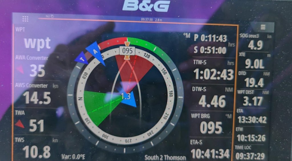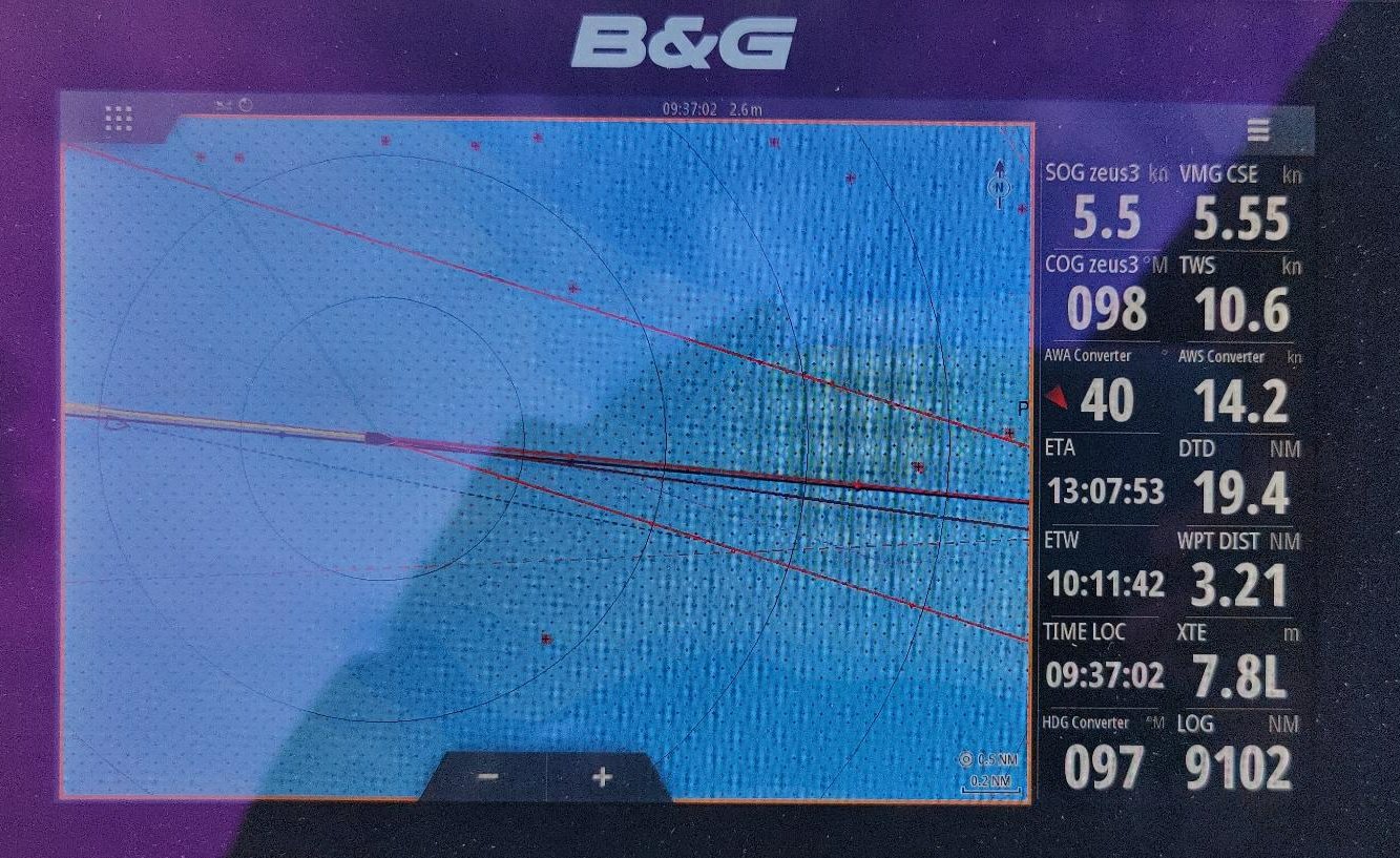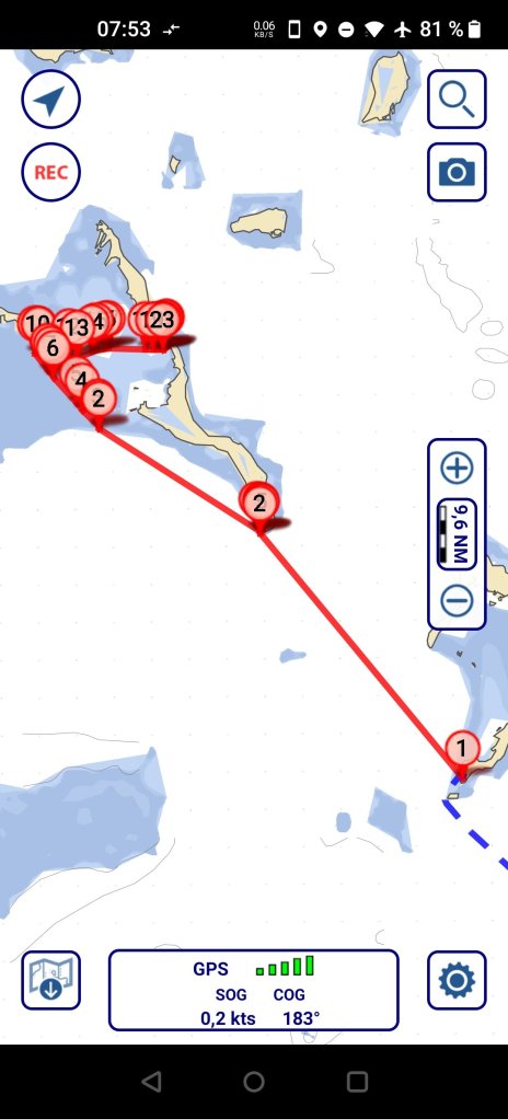 Um es kurz zu machen (😂) das war herrlich. Teilweise mussten wir dann motoren, weil bei extremen Vorwindkursen (<35⁰ AWA) geht nix mehr. Aber bis dahin! Das ruhige Wasser macht aus dem kleinen Cruiser eine Rennziege. Unsere Baradal!😊⛵
