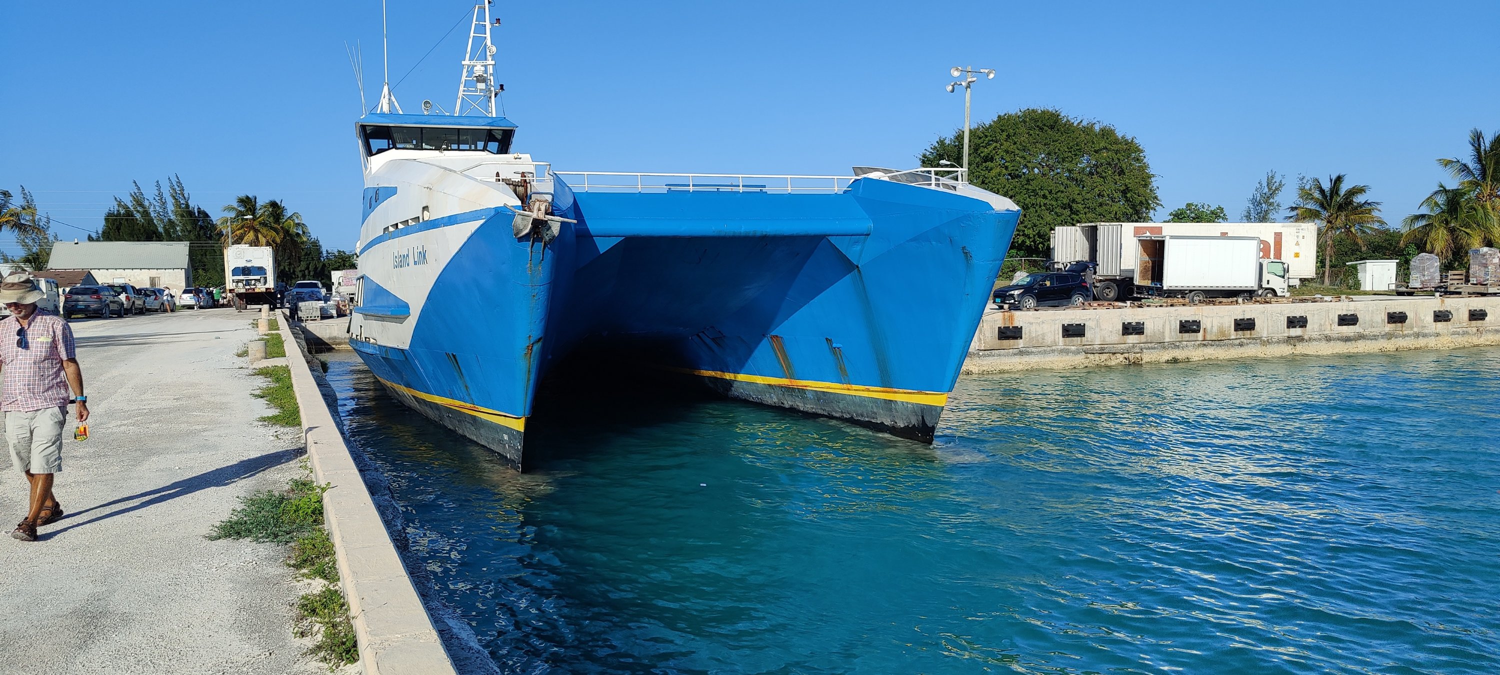 Ja, wenn das Versorgungsschiff kommt ist es immer klasse..da lebt die Insel auf. Es ist wie ein kleines Weihnachten. Einmal die Woche halt. Alles wird per Schiff angefahren. Es geht ja nicht anders. So stehen die hoffnungsvollen Empfänger und warten auf die Übergabe ihrer bestellten Ware. Das wird sorgsam vom Agenten des zuständigen „Forwarders“ überwacht und notiert. Soll ja nix falsch ankommen. Nun denn, für Toni lohnt sich wohl das Geschäft, seine Goldzähne sind dafür ein eindruckvoller Beleg.