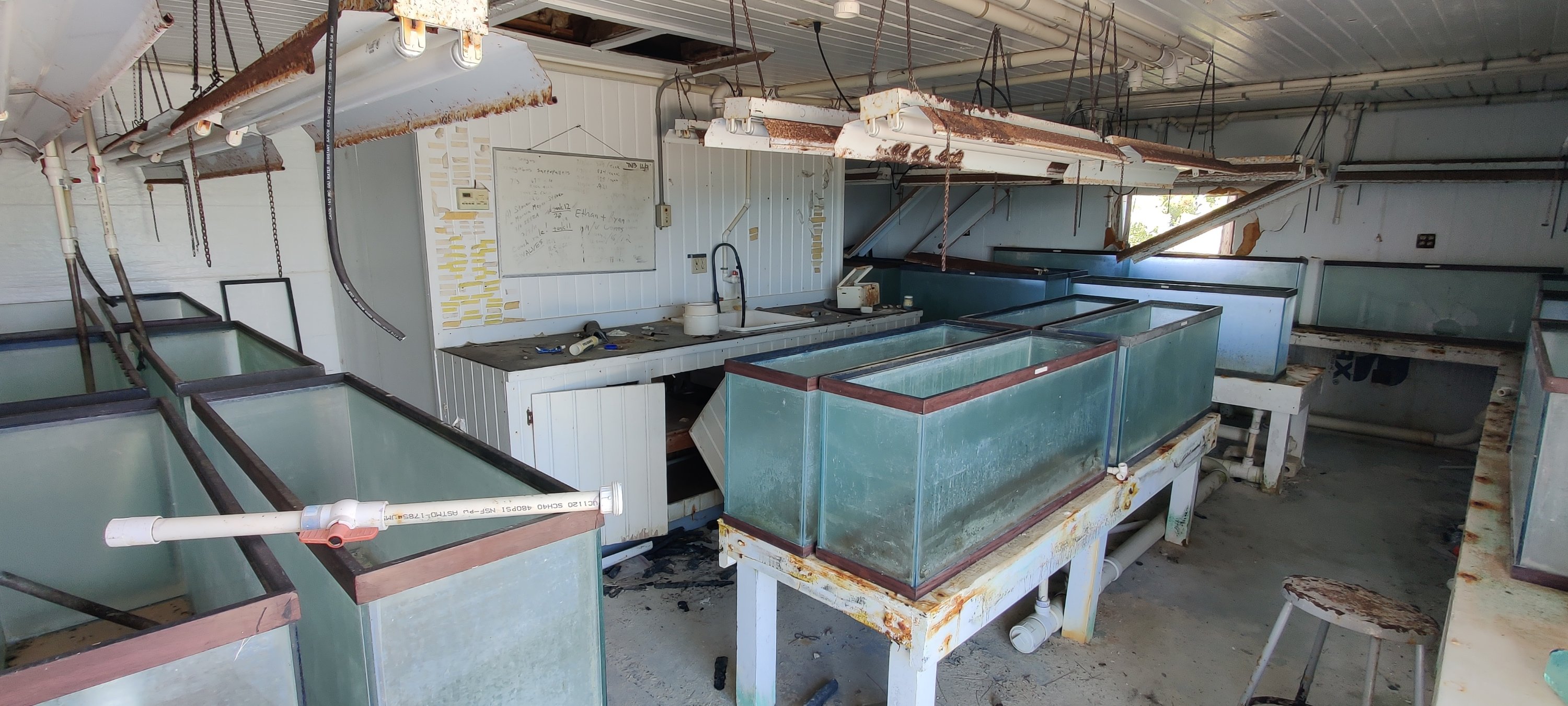 Am Ende haben wir vor einer 2012 aufgegebenen amerikanischen Forschungsstation geankert. Bizarr! Anders kann man es nicht bezeichnen. Da hat sich ein reicher Mensch einen Zoo an Wissenschaftlern gehalten. Mit Flugplatz, tollen Villen und allem Schnick und Schnack. Und als das Geld weg war, waren auch die Wissenschaftler weg. Jetzt sind ein paar Arbeiter bemüht, den Verfall aufzuhalten. Nun gut, es ist ein gewisses Bemühen zu konstatieren.