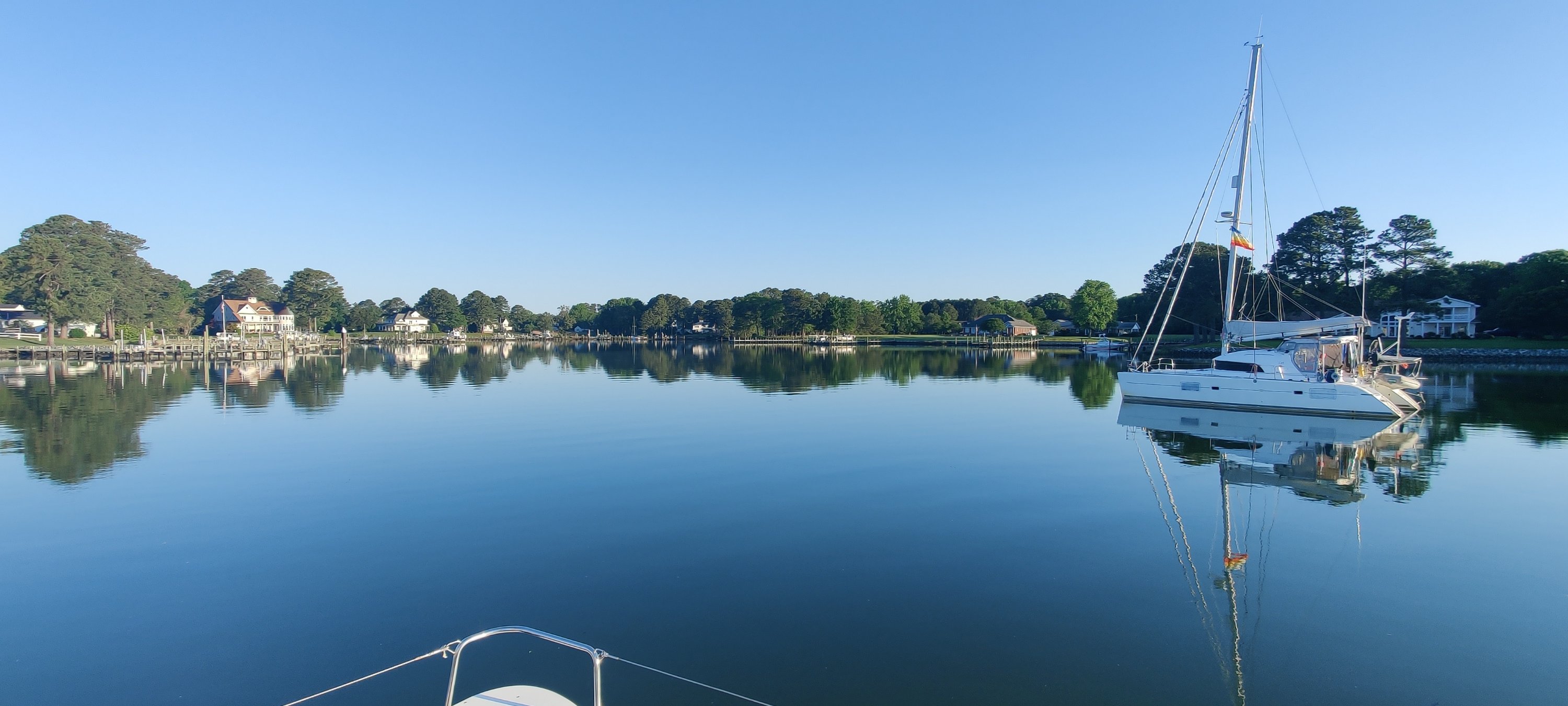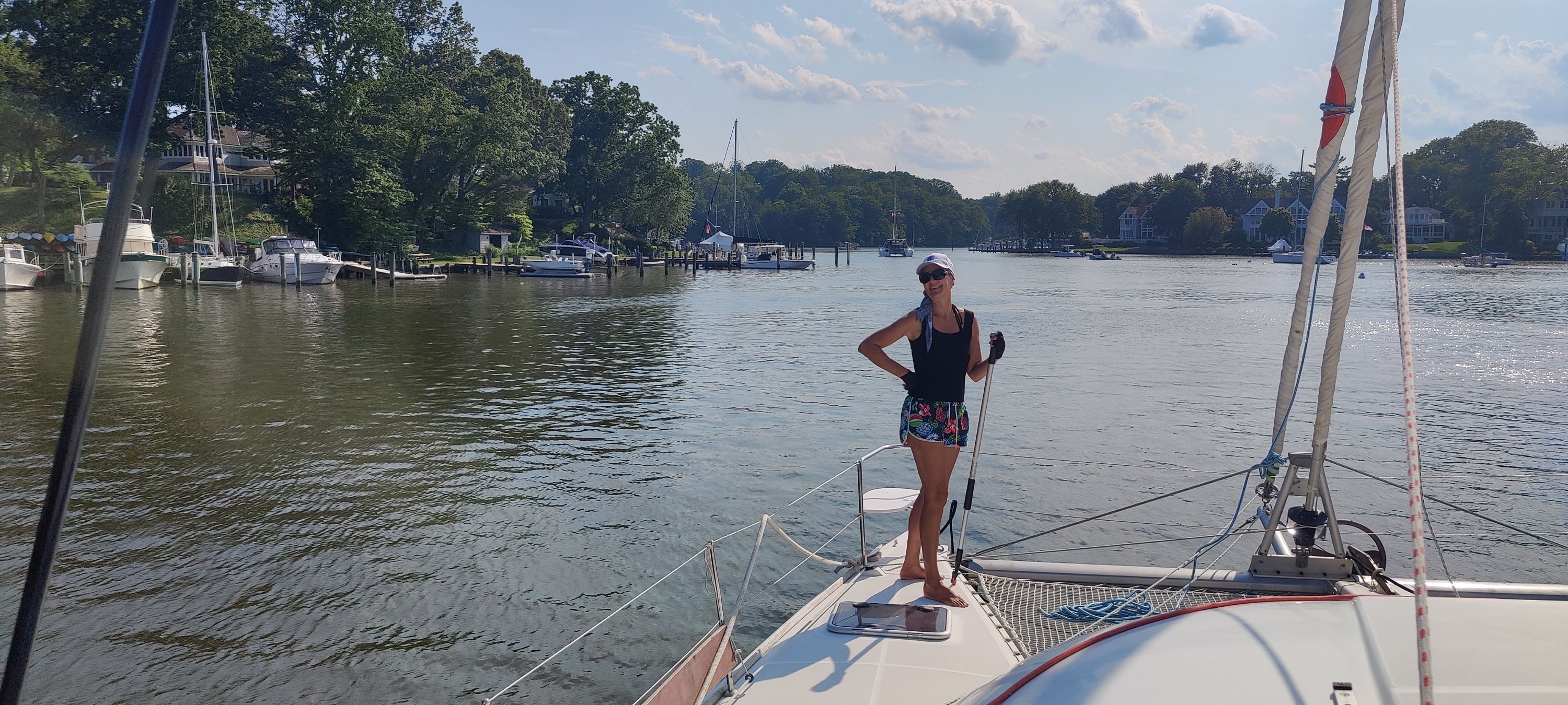 Auf dem Weg nach NewYork steht noch Annapolis im Norden der Bucht auf unserer Zielliste. Es soll ein schöner Ort sein. Die Strecke von Deltaville nach Annapolis ist für einen Tagestrip zu lang. Wir suchen uns deshalb St. Jerome Creek für die Nacht aus. Was wir nicht bedacht hatten, dass die Einfahrt so versandet ist und die Markierungen nicht angepasst wurden. Wieder festgefahren (7.!) und rückwärts wieder raus aus dem Sand. Ein netter lokaler Skipper vor Ort hat uns dann über Funk reingelotst. Ich war am Anfang so perplex über das Hilfsangebot per Funk, dass es etwas gedauert hat, bis ich es richtig realisiert hatte. Die iCat hat er dann sogar mit seinem Motorboot durch die Untiefen geleitet. Nachher, bei einem kurzen Bier an Bord der Baradal, erzählt er uns etwas von seinem Leben hier vor Ort. Er empfindet es als großes Glück und wir stimmen ihm zu.