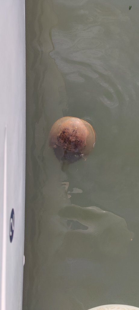 Abends am Ankerplatz gondeln noch mehr von diesen Tieren vorbei. Merkwüdig. Beim vorsichtigen Antippen mit einem Stock stellt sich heraus, es ist hart wie eine Schildkröte?!
