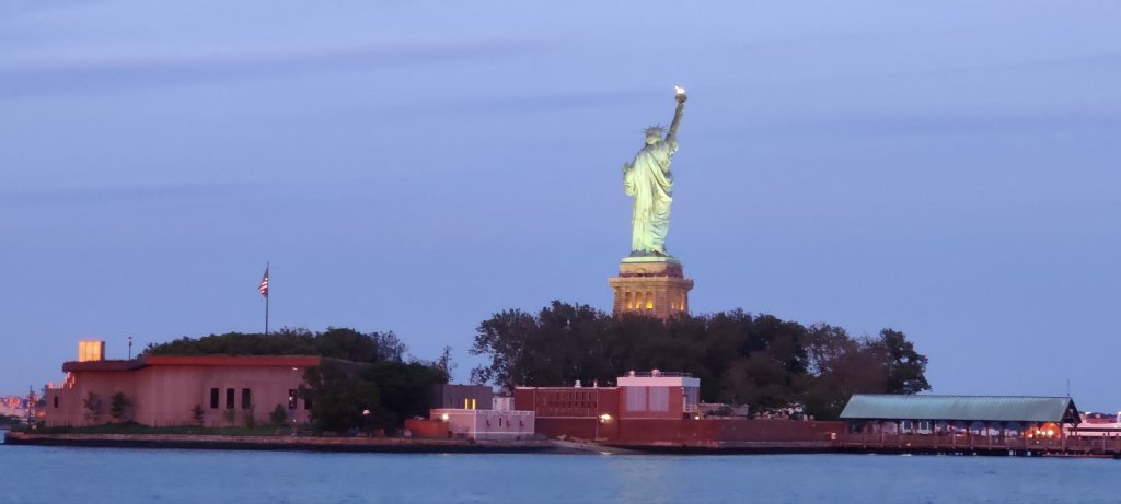 Da sind wir nun und staunen diese Wucht an. Liberty und Manhattan Skyline. Boah.