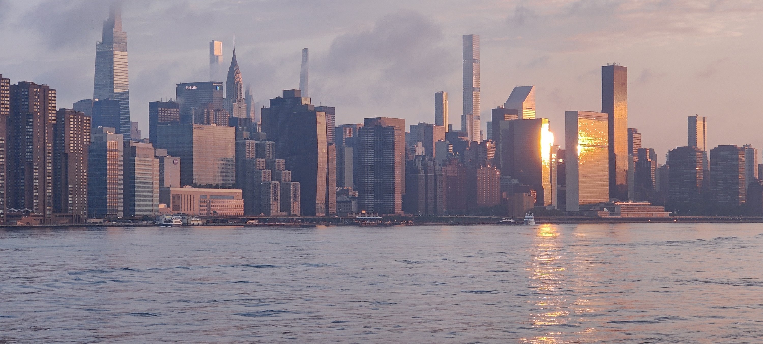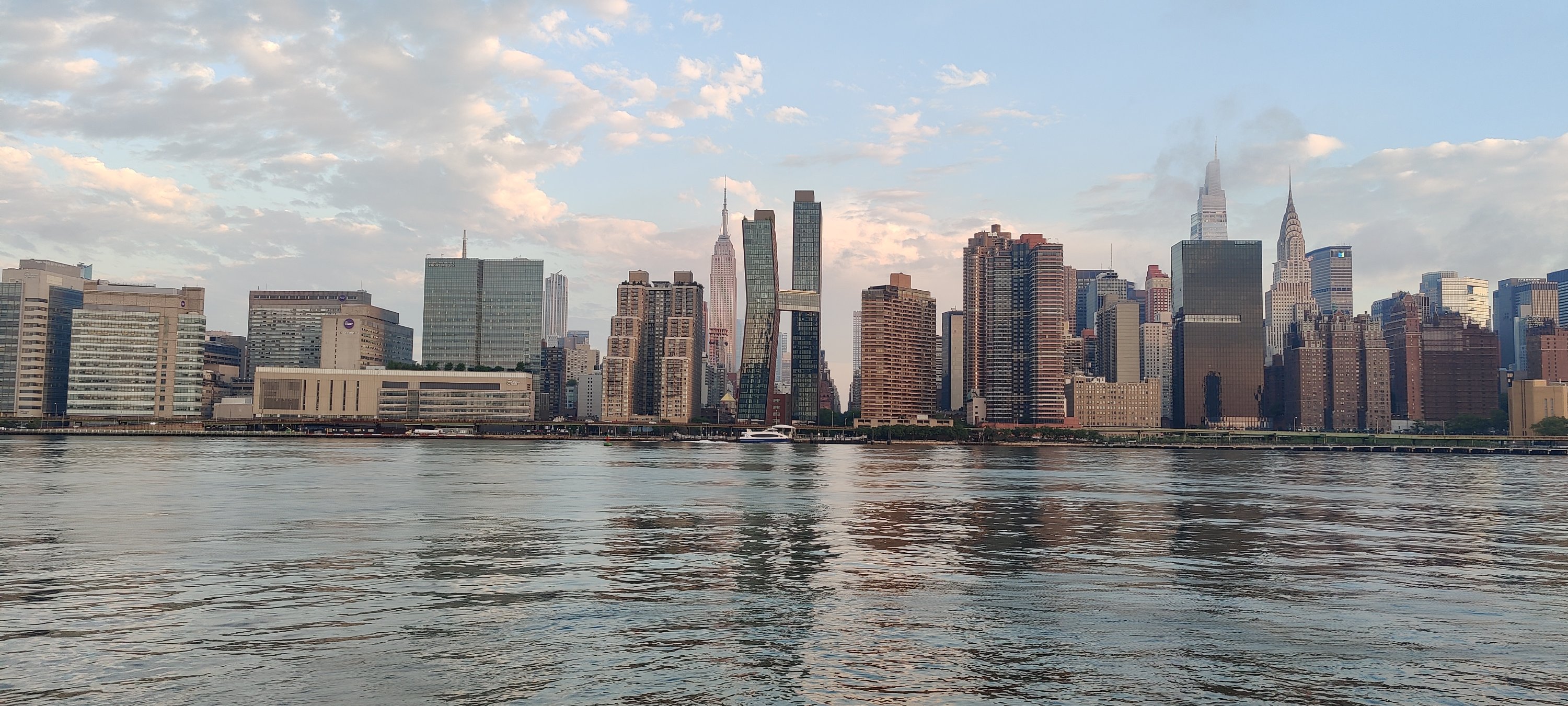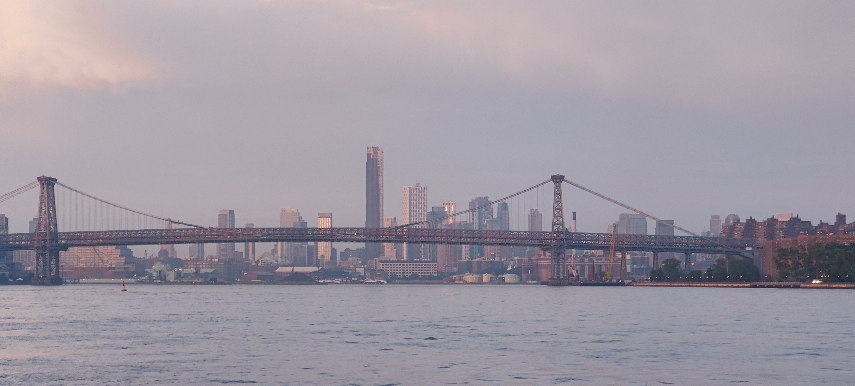 Wir fahren mit mittlerer Drehzahl (1500) los und kommen am Eingang zum East River kurz nach 5:00 Uhr an. Die erste Fähre spielt etwas mit uns, wir können uns aber auf gute Nachbarschaft einigen. Fähren gibt es hier so viele wie Busse und wir kommen auch an einem Fähren-Depot vorbei. Wir gleiten den East River an den wahnsinnig beeindruckenden Wolkenkratzern entlang. Das Wasser ist ruhig, wir sind seit Stunden das erste Boot, das das Wasser zerschneidet.