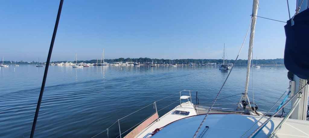 Pünktlich, kurz nach 09:00 Uhr kommen wir an. Tanken, füllen die Wassertanks auf und finden schnell eine gute Mooringboje. Das Taxiboot kommt vorbei und erklärt uns, dass die erste Nacht kostenlos ist, danach 35$ pro Nacht inklusive Taxiboot-Transfer ans Land. Wenn jetzt mein Rücken nicht mit der Hexe flirten würde… ist der Tag trotzdem perfekt. 🗽😘⛵⚓🍻
