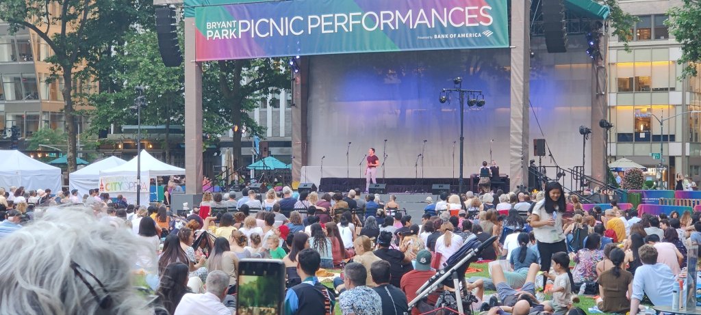 Und was wäre New York ohne all die Parks und Plätze. Mal stehen Stühle und Tische für eine kleine Pause bereit. Dann sind es gepflegte Rasenflächen vor einer Bühne, auf der kostenfrei Musik dargeboten wird. Und immer geht es freundlich zu.