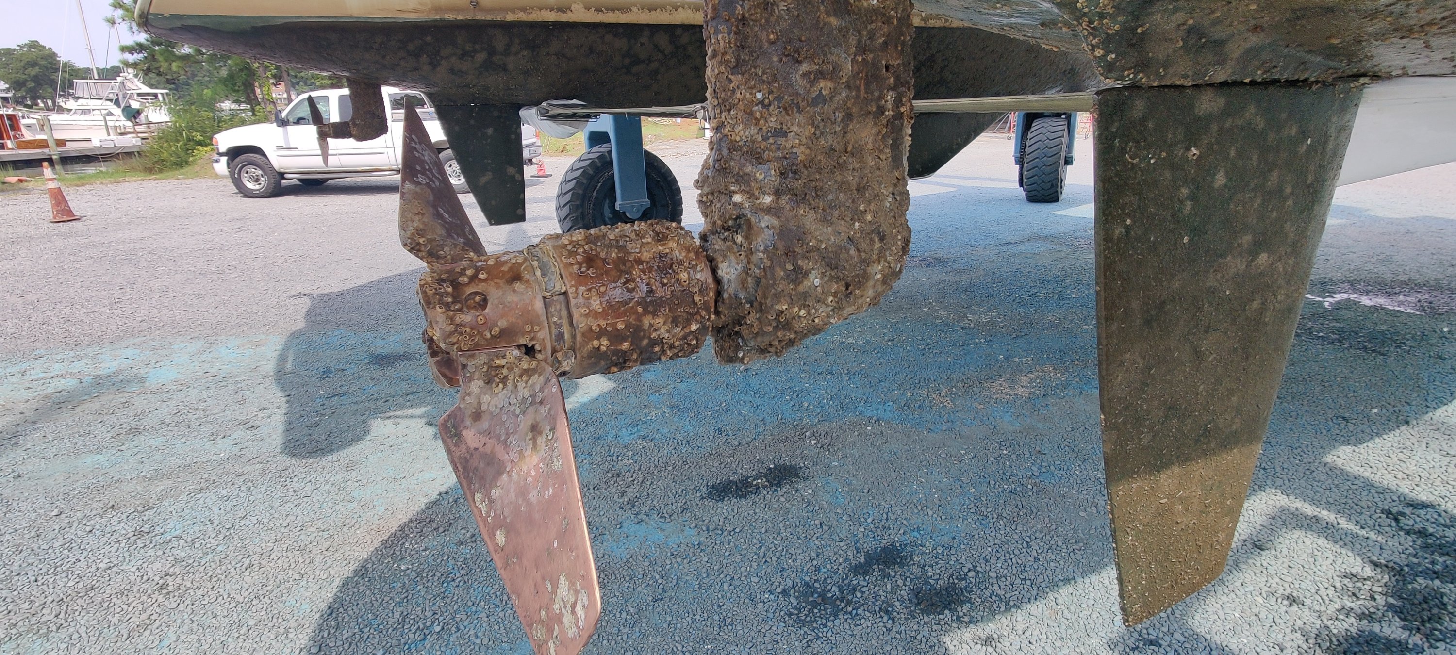 So, unser Ziel Deltaville haben wir ohne große Irritationen erreicht. Hier kommt die Baradal an Land, wird geputzt und erhält eine Auffrischung des Coppercoats (Unterwasseranstrich).