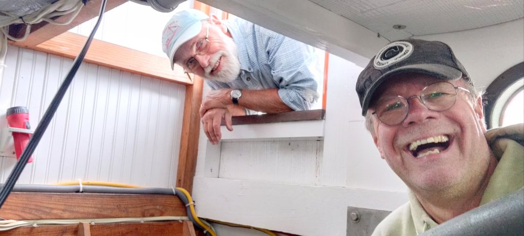 Noch nicht so ganz, aber schon mal wieder beim Boot in Deltaville⛵.