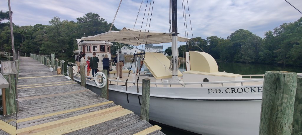 Samstags ist einmal im Monat Farmers Market in Deltaville. Nun gut, es gibt nur einen Stand mit Gemüse und Obst. Der Rest sind Handarbeiten der lokalen Damen zu wohltätigen Zwecken. Der Markt findet auf dem Gelände des Maritime Museums statt. Dort liegt ein historisches hölzernes Frachtschiff, das John restauriert hat und mir in allen Einzelheiten erklärt. Faszinierend!