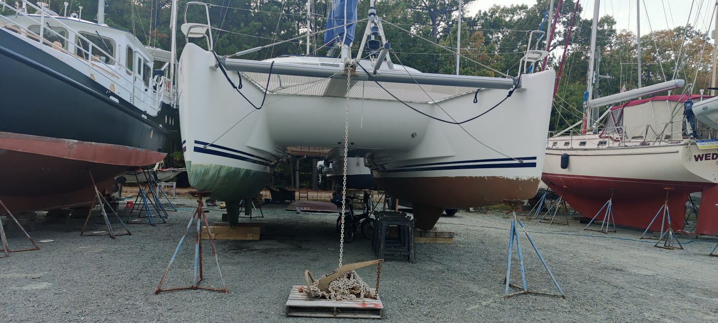 Aber es geht voran. Ein Rumpf ist fertig geschliffen. Der zweite Rumpf ist angefangen. Wenn Ian durch ist, kann das Anstreichen beginnen.