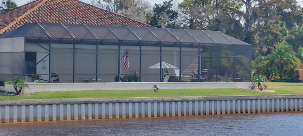 Aber der Weg hierhin war mal wieder speziell! Die Fahrt nach Titusville (gesprochen ‚Teituswill‘) ist ca. 90 nm lang. Zuviel für einen kurzen Wintertag. Der erste Tag war durch schönen Wind von schräg hinten und bestes Wetter geprägt. Es war herrlich im Fahrradtempo durch die Landschaft zu gleiten. Hier ist der ICW oft mit Mangroven begrenzt und es geht abwechselnd an gepflegten Villen und Naturlandschaften vorbei. Etwas betrüblich stimmten die vielen gestrandeten oder halb versunkenen Boote am Ufer. Die zwei Stürme dieser Saison haben ihre Spuren hinterlassen. Auch manches Haus bedarf einer fachkundigen Hand!