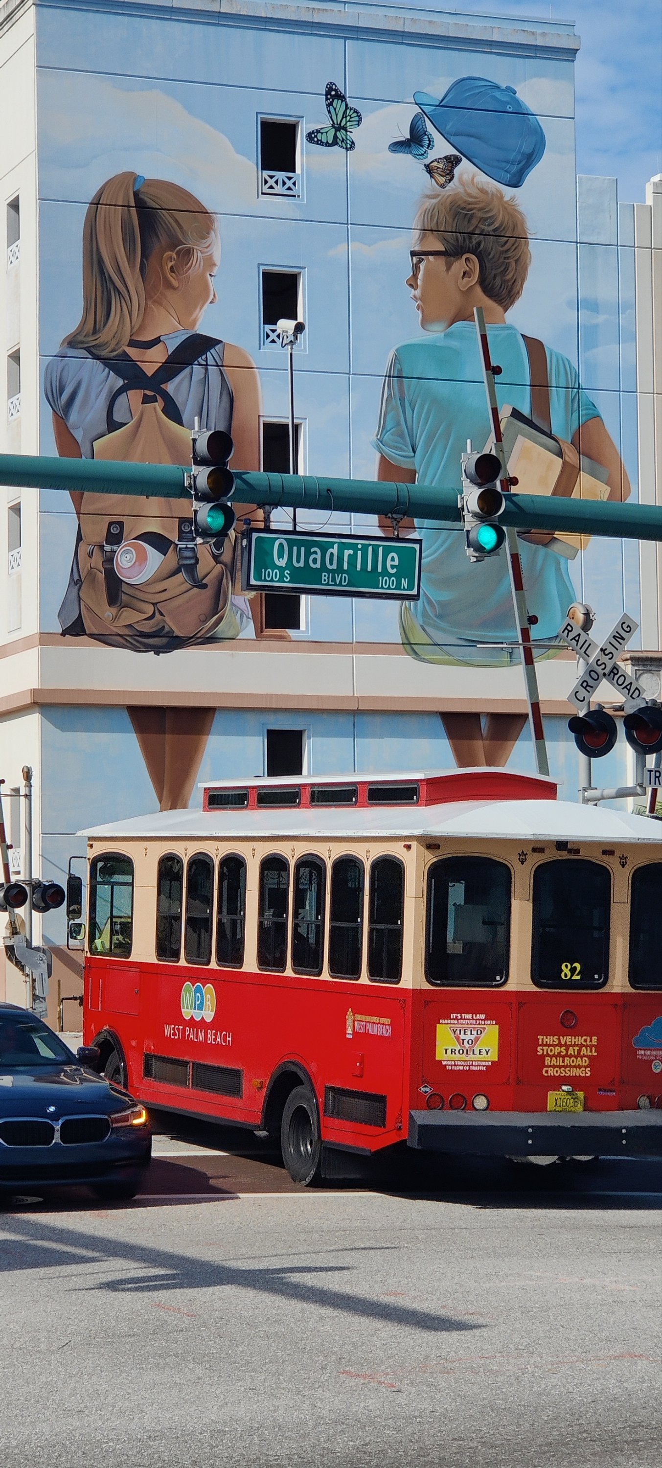 Und dann gibt es drei kostenfreie Trolley-Linien, die quer durch die Stadt fahren. Prima, da wollten wir mit der blauen Linie nach Northwood Village fahren, einem historischen Stadtteil von West Palm Beach. Gut, den ersten Versuch haben wir in den Sand gesetzt. Die Trolleys halten sich nicht an geschriebene Fahrpläne. Als wir nach ca. 45 Minuten aufgegeben hatten und wieder zurück trotteten kam natürlich der Trolley. Somit wussten wir aber, dass er an der Haltestelle vorbeikommt. Mit dem Wissen sind wir am nächsten Tag erfolgreich zur Mitfahrt gekommen. Nun denn, wir haben wieder etwas gelernt.