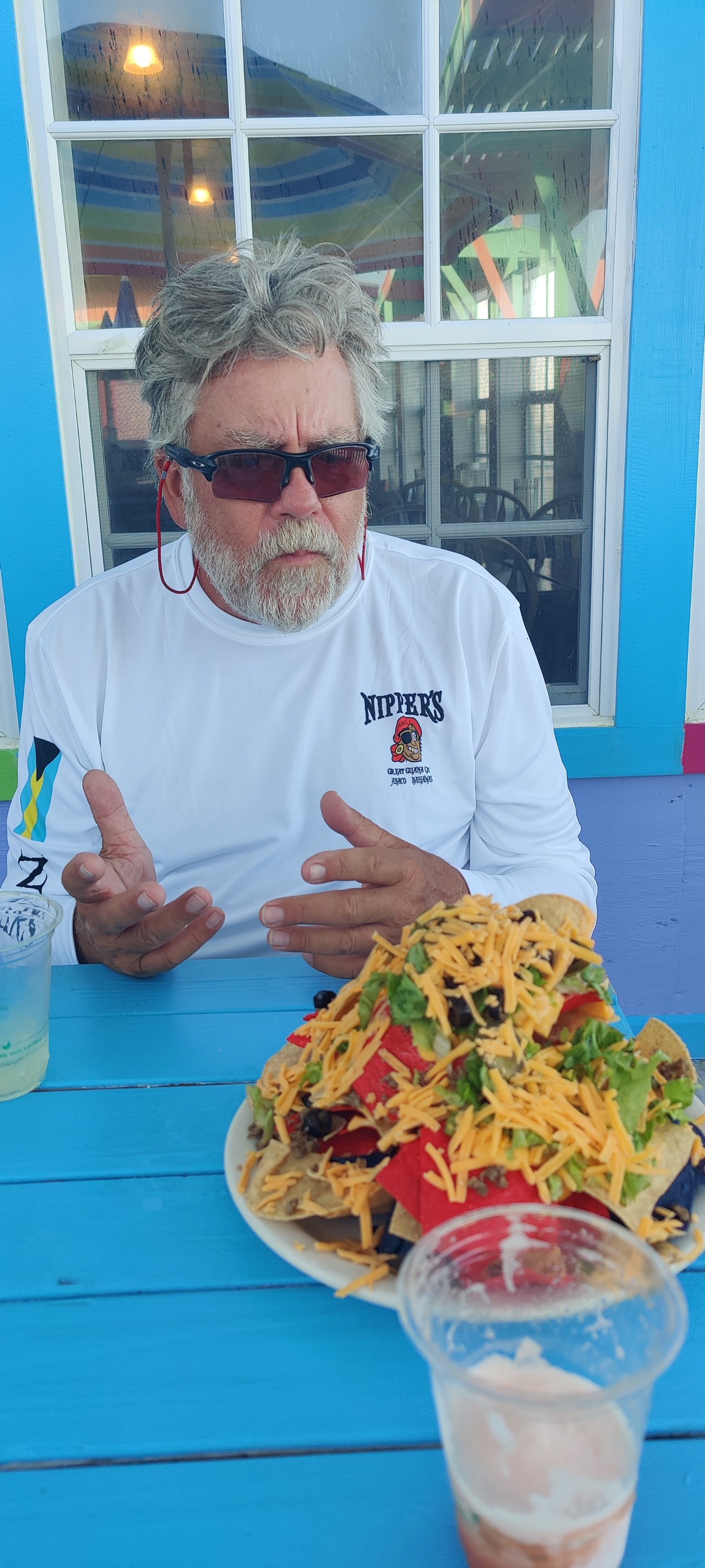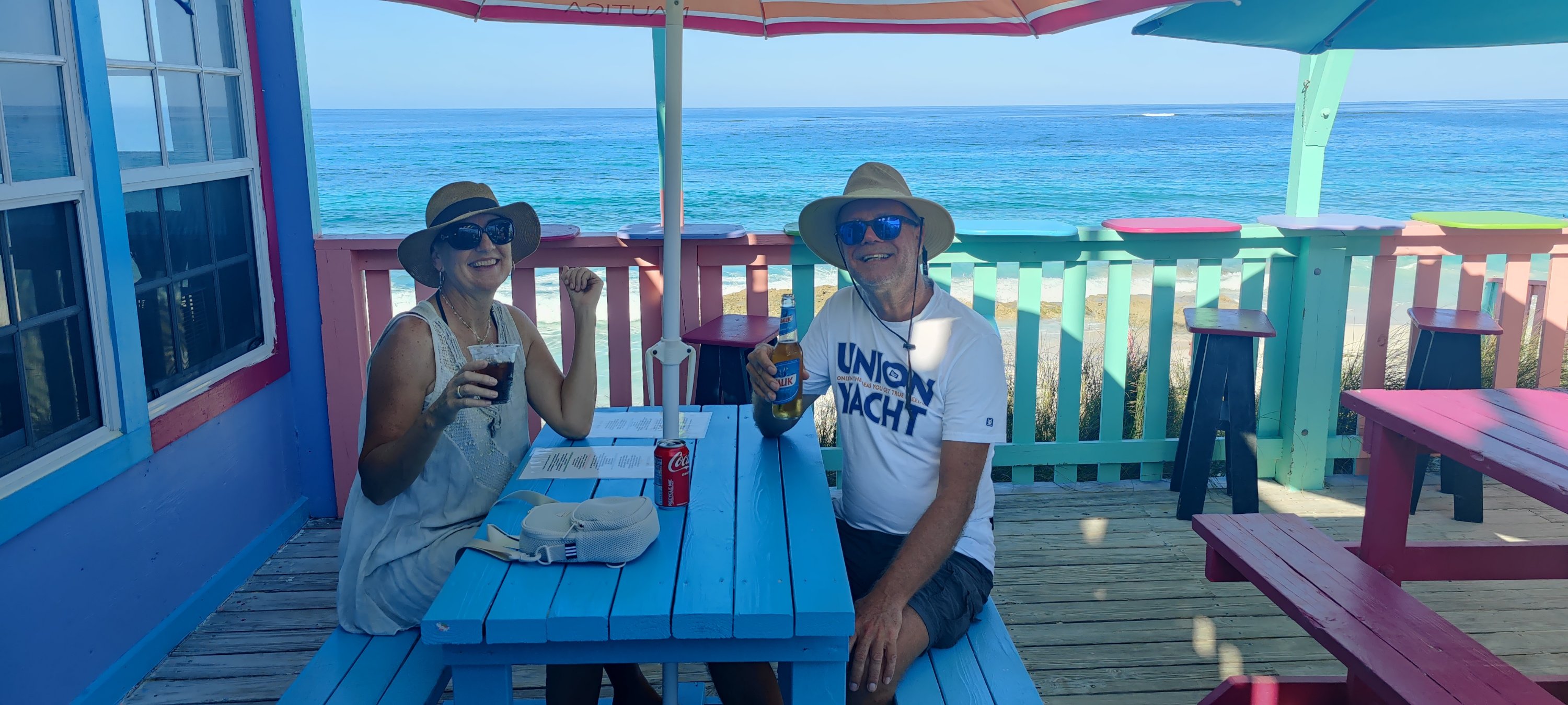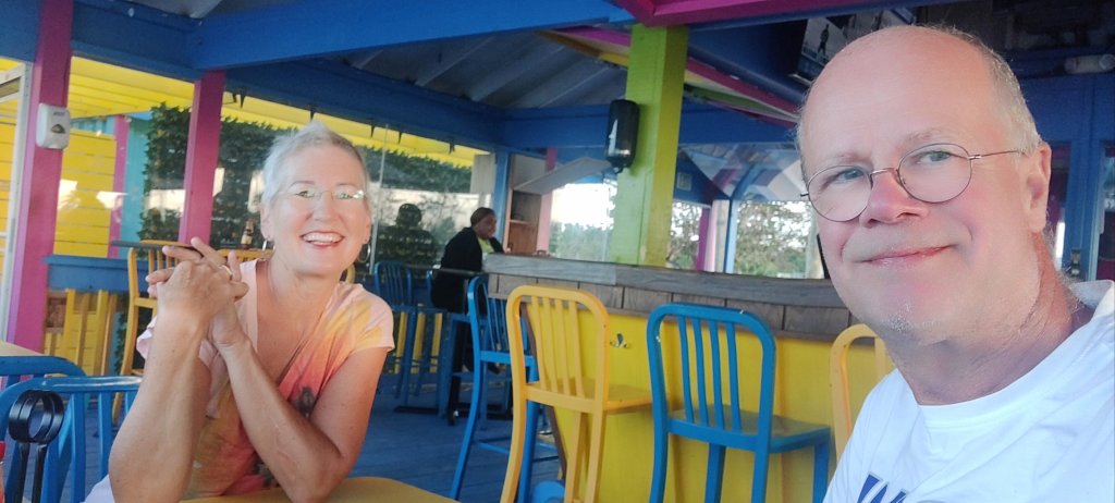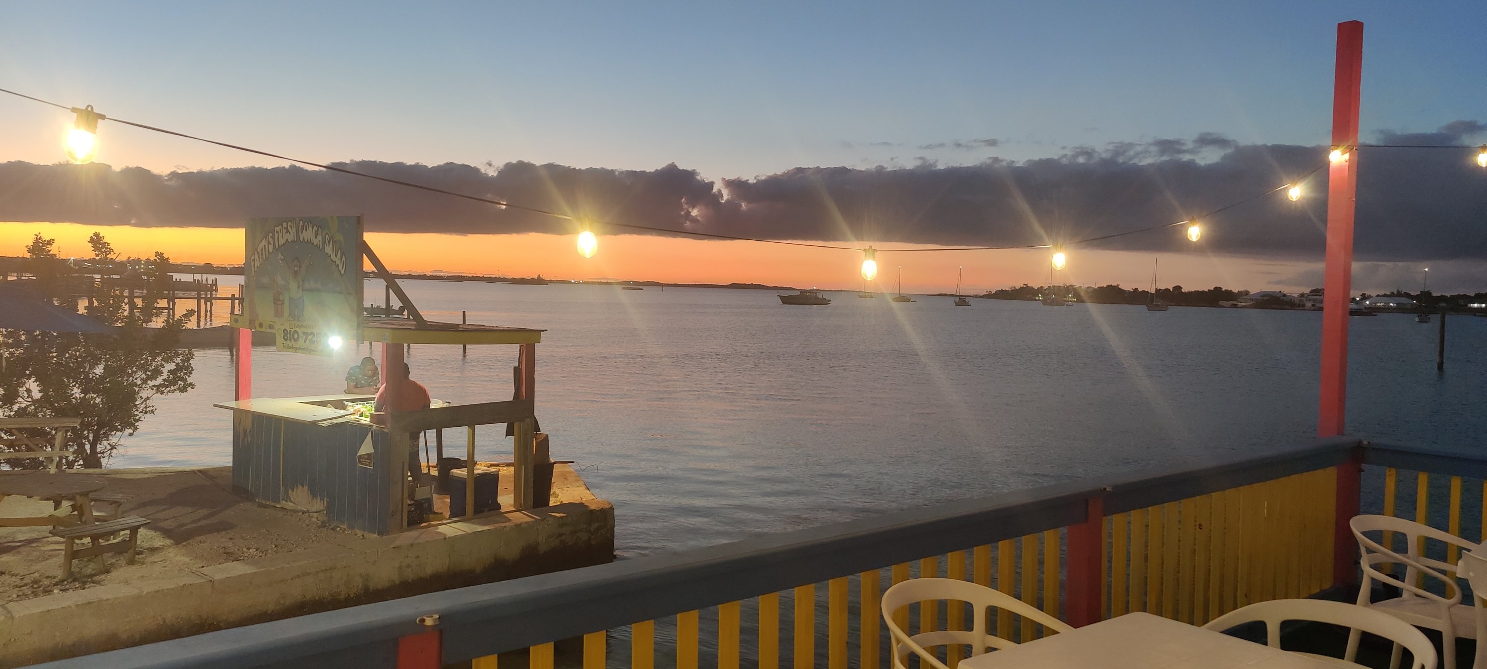 Jetzt sind wir also in ‚Marsh Harbor‘ gelandet und warten den Sturm ab. Die ruhigen Tage davor nutzten wir für Einkäufe, Benzin tanken und einen Besuch im Colors Restaurant.