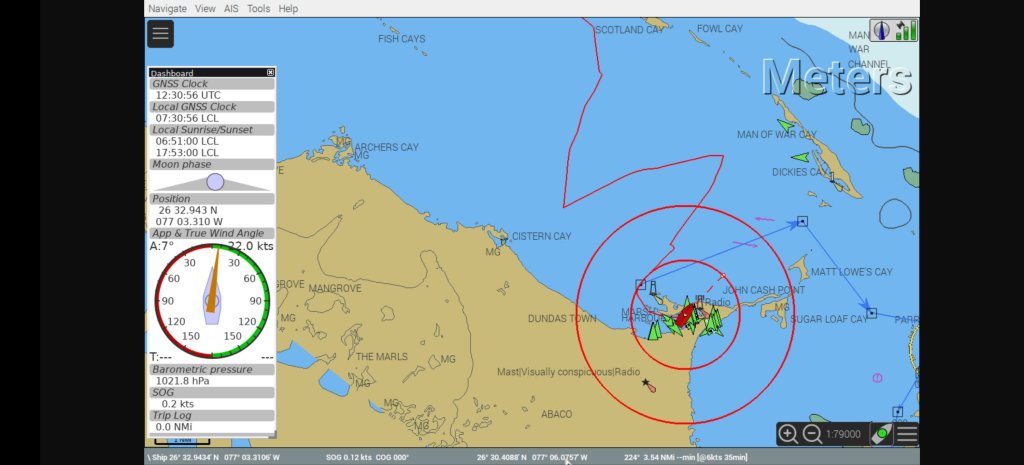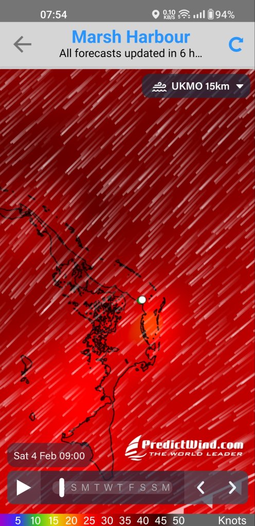 Jau, es ist mal wieder Starkwind angesagt. Bis gut 35 kn Wind aus NordOst. Während ich das hier schreibe bläst es ordentlich mit Windstärke 25 – 30 kn. Aber wir liegen perfekt und völlig ruhig in der Bucht von Marsh Harbor⚓. Die anderen Boote liegen neben oder hinter uns, gesehen vom Wind aus. Da kann nicht viel passieren, wenn mal bei einem der Anker nicht halten sollte. Wir haben entsprechend gut und ruhig geschlafen. Der Ankeralarm ist aber aktiviert. Sollte unser Anker rutschen ertönt ein lauter Alarmton. Dann schmeißen wir die Motoren an und stabilisieren das Schiff wieder.