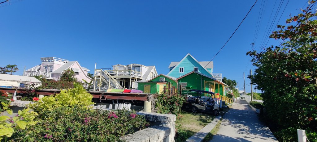 Wir sind in Hope Town, einem Örtchen auf den Elbow Cays, Abacos. Der Name ist Programm, geht es doch nach dem Hurricane 2019 kräftig voran. Die schmucken Häuser zieren das Ufer um den Naturhafen. Es sind fast alles Ferienhäuser. Klein, aber sehr fein.