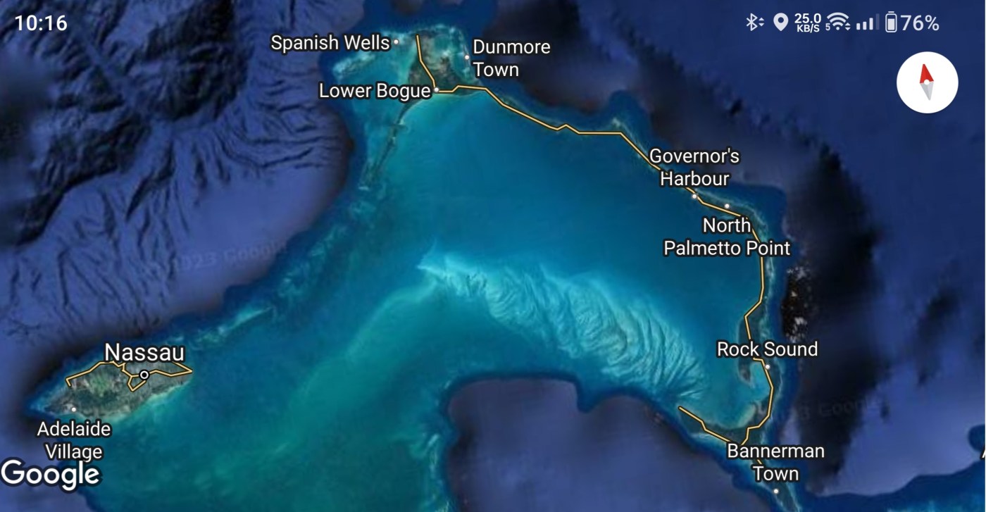 Gut gestärkt sind wir dann nach Rock Sound, dem südlichen Zipfel von Eleuthera gesegelt. Gut, der Wind erforderte etwas Unterstützung vom grünen Segel (Motor, grün gestrichen)😂⛵.