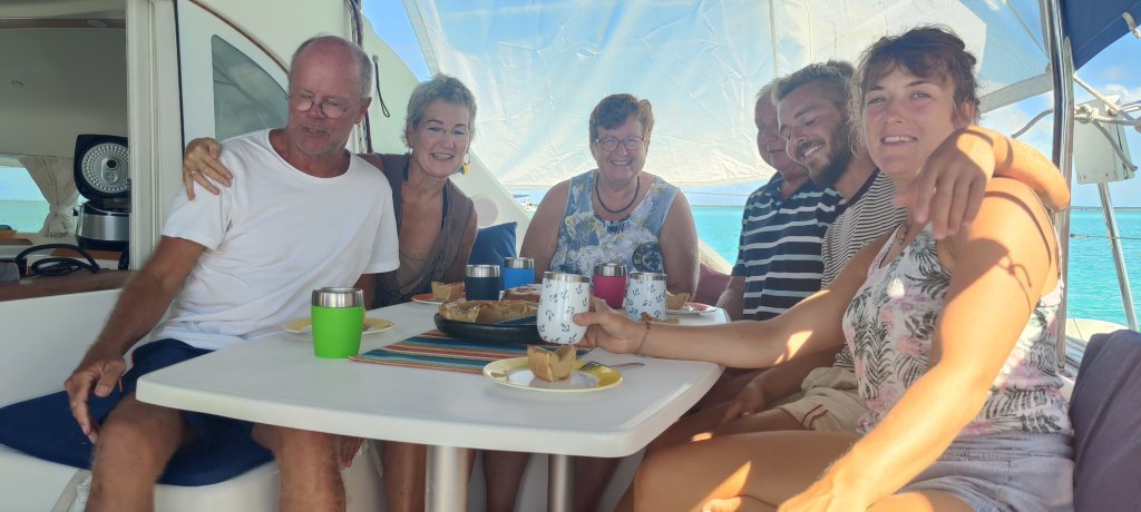 Aber es ist ja nicht so, dass nur Reparaturen anstehen. Wir treffen ein sehr nettes junges Paar (Lena und Adrian) aus Deutschland. Sie haben sich für ihr Sabatical kurz entschlossen ein altes Segelboot gekauft. Damit sind sie mittlerweile ganz gut rum gekommen. In den USA wollen sie es wieder verkaufen und dann zurück in das Berufsleben. Wir haben kurz entschlossen zusammen mit der Obelix einen tollen Kaffeeklatsch gemacht!☕🥧