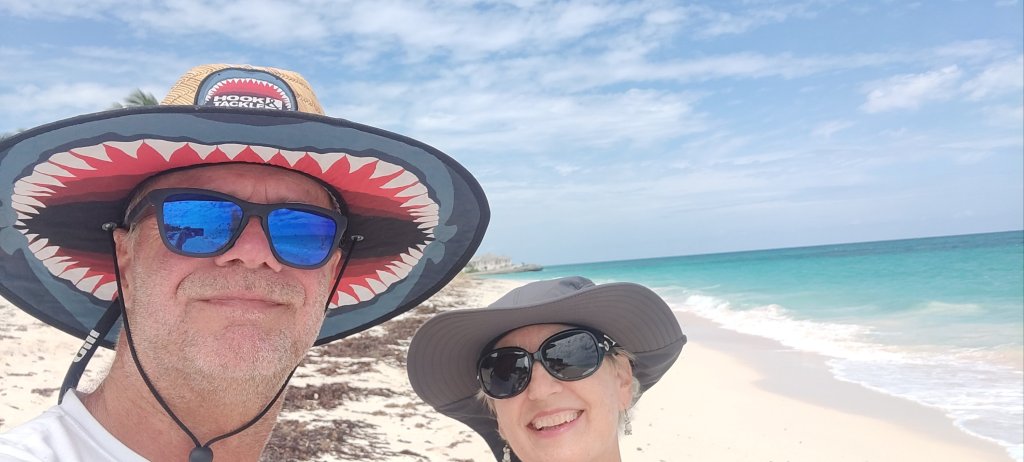 Und schon ging es weiter. Wieder auf die Abacos. Unsere letzte Station auf den Bahamas für diese Saison. Der Wind steht gut und so segeln wir flott über die Passage (Providence Channel). Es ist ein Gewusel auf der 50 nm langen Strecke. Gut 10 Boote haben die Gelegenheit genutzt. Diese Passage ist gerne ungemütlich und oft durch die querende Großschifffahrt anstrengend. Man muss sehr aufpassen. Es läuft super und wir kommen am Nachmittag unter Segel durch das Inlett bei Little Harbour. Es ist fast slack time, also kaum Strömung. So lieben wir es. Da so viele Boote angekommen sind, gehen wir nicht in die enge Bucht von Little Harbour, sondern legen uns gemütlich in den Windschatten der nächsten Insel 🏝️. Langsam stehen die Signale auf Abfahrt in die USA! Aber nicht, ohne noch zuvor einen tollen Spaziergang am Strand von Elbow Cay zu machen.