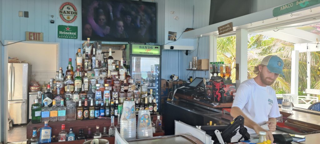 Nach einem kurzen Abstecher nach Marsh Harbour zum Einkaufen, genießen wir noch den Abend im Colors. Das ist eine herrlich angenehme und nicht überteuerte Bar dort am Ufer.