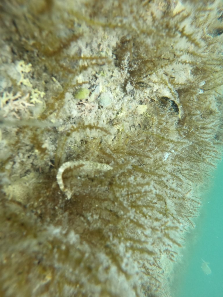 Die Seepferdchen sind nicht leicht zu fotographieren. Sie verstecken sich flott. Mit bester Laune krabbeln wir wieder aus dem Wasser. Oh Schreck, was ist das?