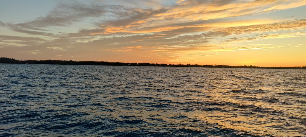Zusammen mit etwas Motorunterstützung geht es flott voran. Trotzdem kommen wir in dunkelster Nacht, der Mond geht gerade erst auf, in Manjacks Cay an. Gut, wir kennen die Bucht, so ist das gut machbar. Aber unbeleuchtete Ankerlieger erfordern die ganze Aufmerksamkeit. Anker runter, ein kleines Bier und die erste Nacht vor Anker in den Bahamas🌴👍⛵⚓🌈