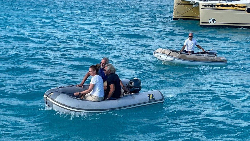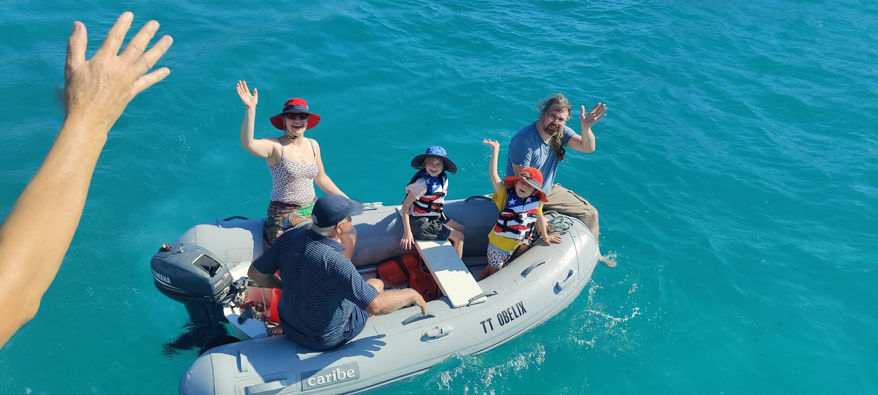 Nach Besichtigung der Baradal geht es gut gelaunt zurück zur Obelix und auf den Weg in die nördlichen Exumas.