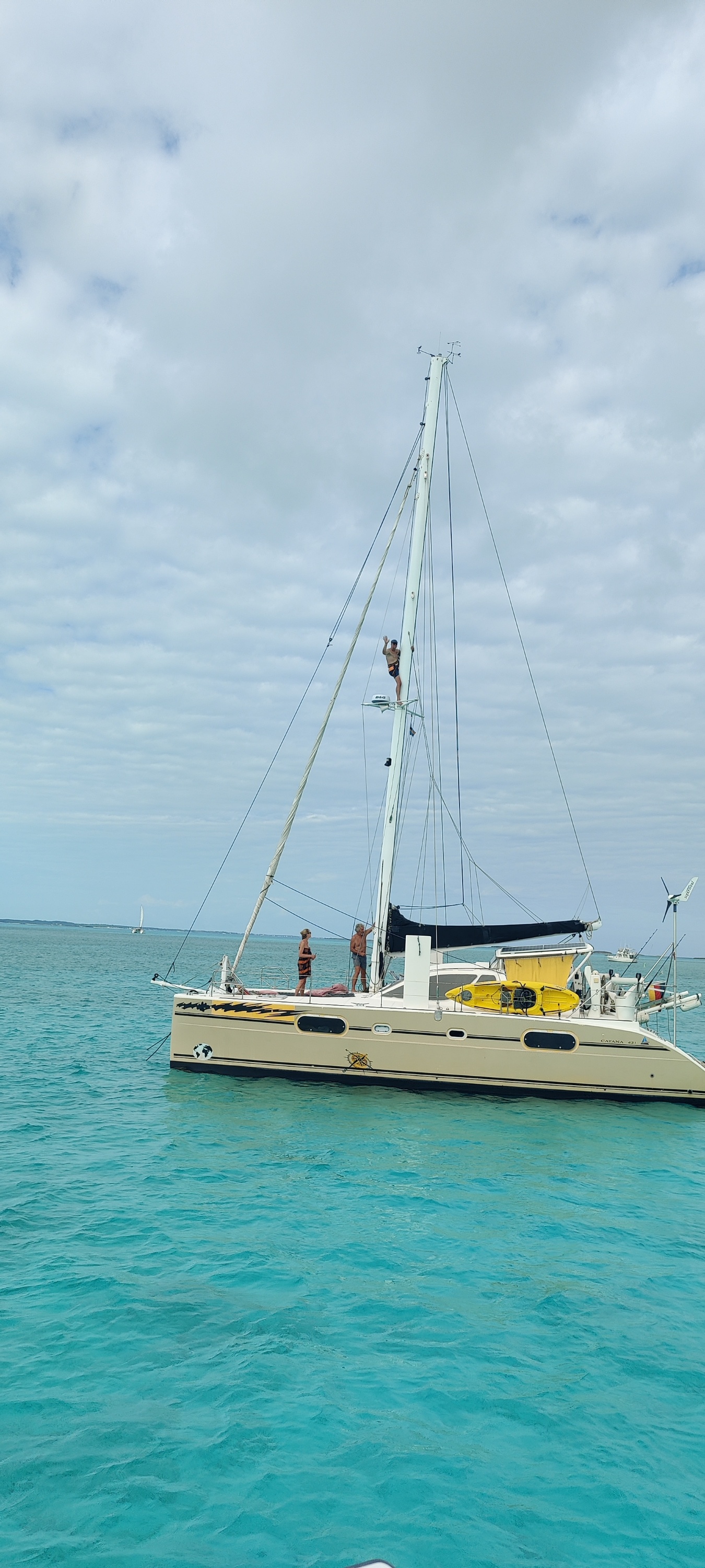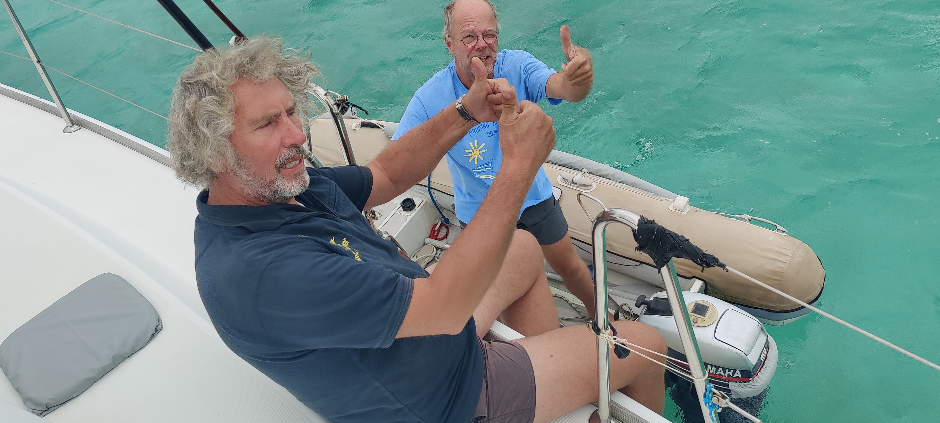 Der Umbau klappt. Damit ist alles bereit für einen Ausflug nach Staniel Cay und zu den schwimmenden Schweinen. Astrid und Stefan bekommen Besuch für gut eine Woche. Da wollen wir Bianca und Arno auch etwas Schönes bieten. Wir sind gespannt, ob sie das Geschaukel und die offene See vertragen. Und ja, es klappt super.