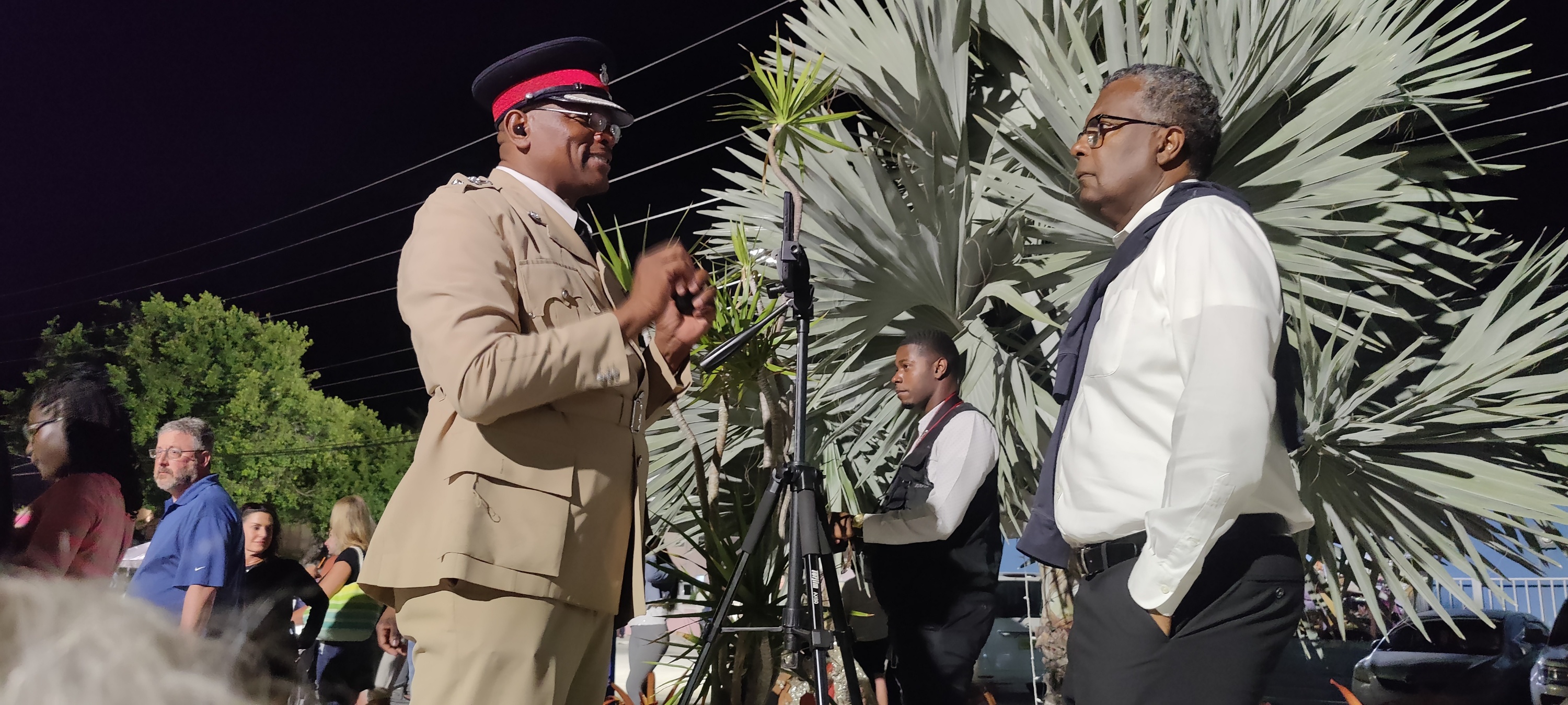 Beim Besuch des Supermarktes und anschließendem Versuch einen leckeren Conchsalat (gesprochen wie Konksalat) zu essen stellen wir fest: Alles geschlossen. Grund ist die Beerdigung des Pfarrers der anglikanischen Gemeinde von George Town. Eine große Gruppe begleitete den Pfarrer auf seiner letzten Reise. Die Musik war stampfend, der Rhythmus wogte in der Gruppe. Gut, in der Kurve war es etwas ruhiger und konzentriert.