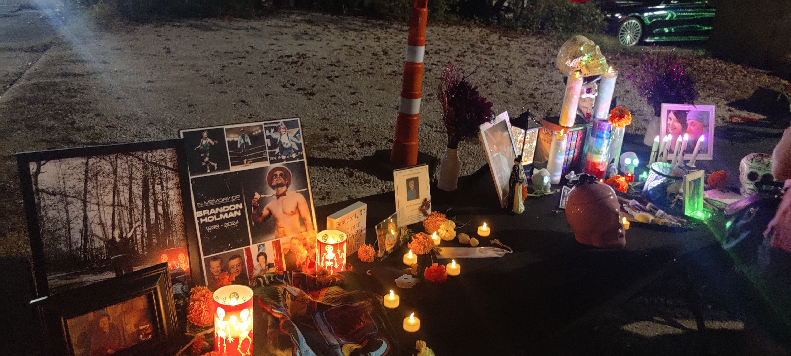 Als wir nachmittags hier vorbei spazierten, sahen wir eine lange Reihe an Tischen. Wir dachten schon mit Schrecken an einen Handarbeitsbasar. Aber weit gefehlt. Da werden kleine Erinnerungstische für die jüngst verstorbenen Verwandten aufgebaut. Sehr persönlich gestaltet und die Besucher interessieren sich dafür.